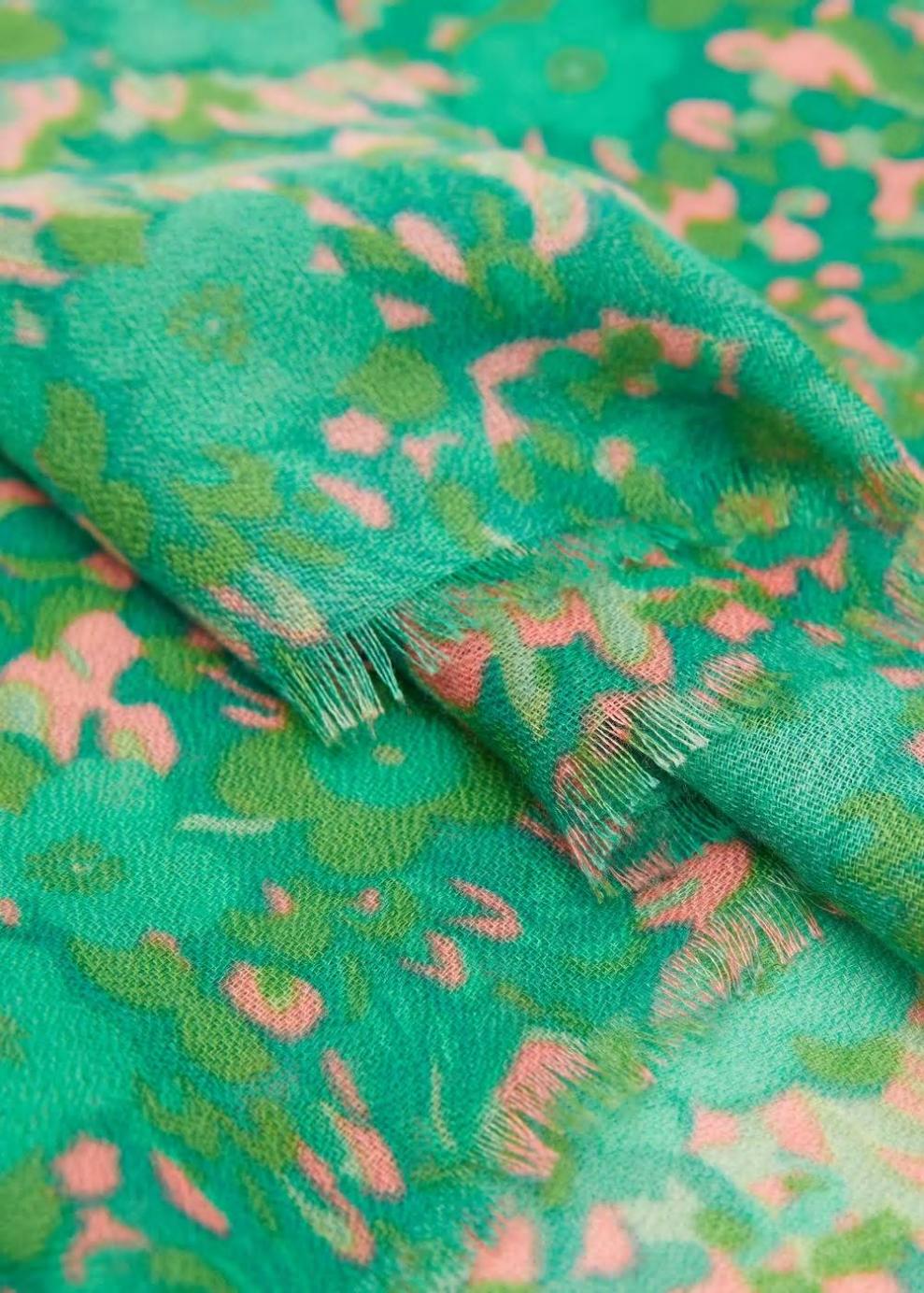 Colección Committed Tejido mezcla de poliéster reciclado Estampado multicolor Diseño largo Bajo desflecado Las prendas etiquetadas como Committed son productos que han sido confeccionadas con fibras y/o procesos de producción sostenible, reduciendo así su impacto ambiental. El objetivo de Mango es respaldar la implementación de prácticas más comprometidas con el medio ambiente, aumentando así, el número de prendas sostenibles en su colección.