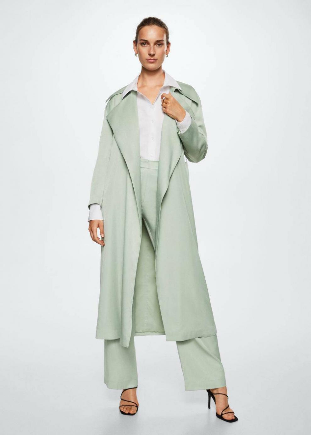 Mujer Gabardina fluida cinturón Verde Pastel | Abrigos Mango