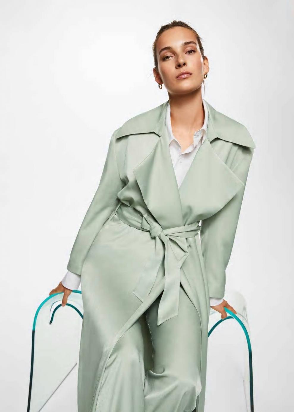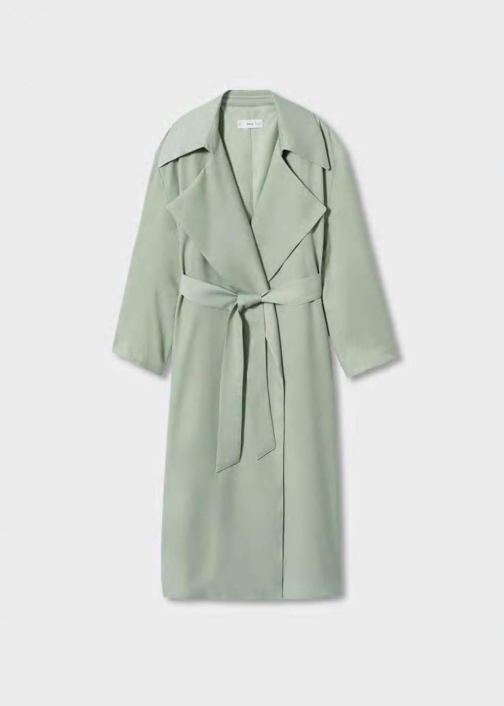 Mujer Gabardina fluida cinturón Verde Pastel | Abrigos Mango