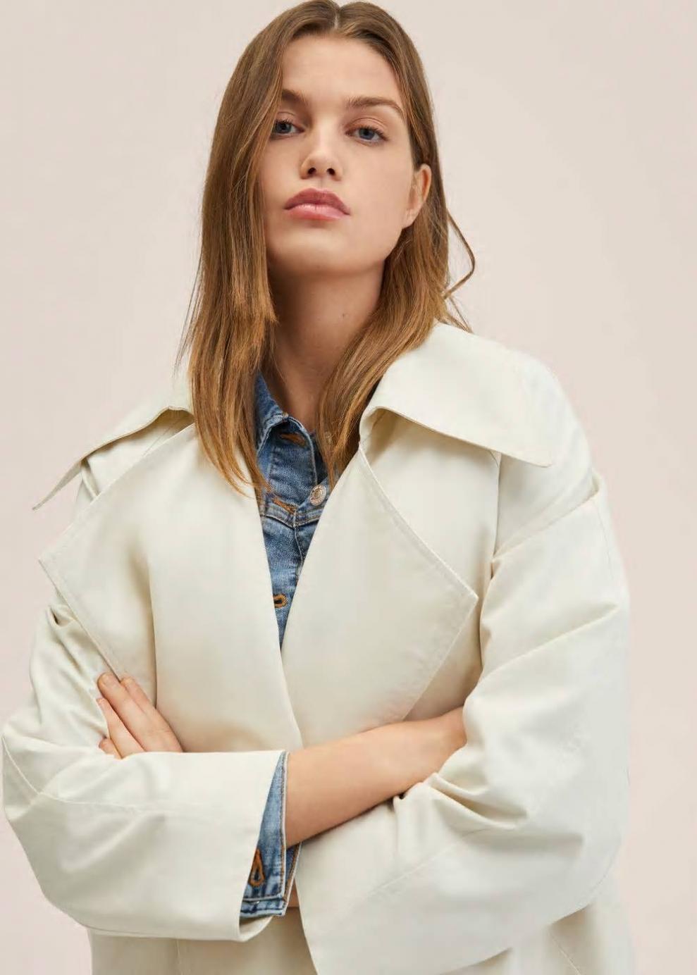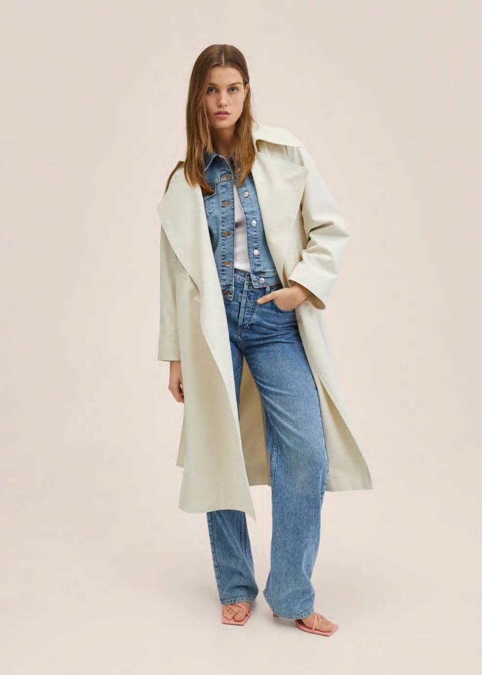 Colección Committed Tejido 100% algodón Water Repellent: Tejido técnico repelente al agua Diseño oversize Diseño largo Cuello de solapa Manga larga Cinturón desmontable Dos bolsillos laterales Abertura posterior en el bajo Forro interior Sin cierre Tallaje más grande de lo habitual Las prendas etiquetadas como Committed son productos que han sido confeccionadas con fibras y/o procesos de producción sostenible, reduciendo así su impacto ambiental. El objetivo de Mango es respaldar la implementación de prácticas más comprometidas con el medio ambiente, aumentando así, el número de prendas sostenibles en su colección.