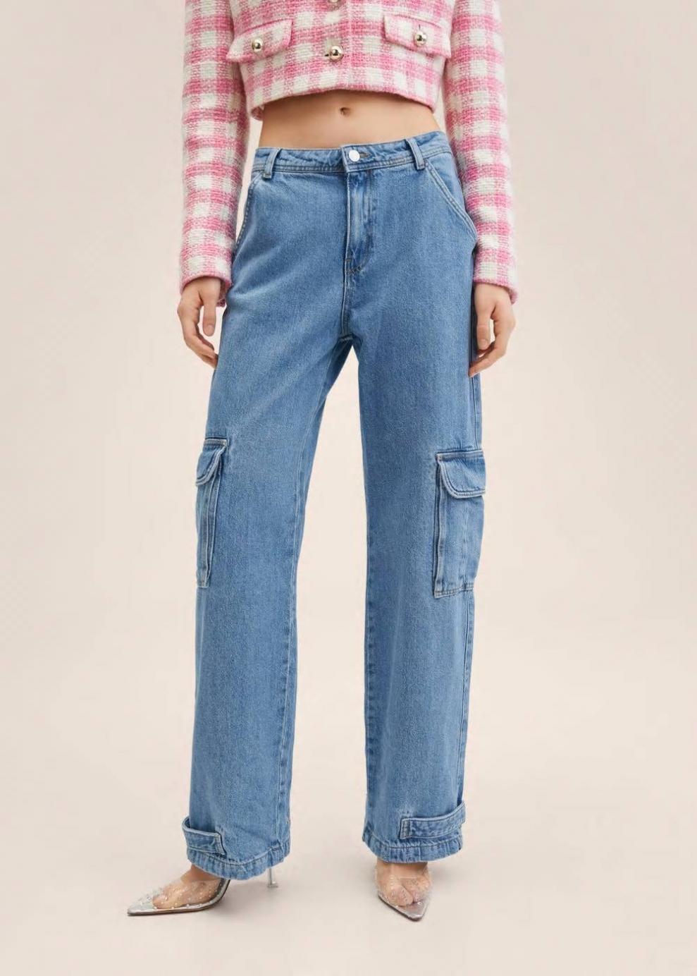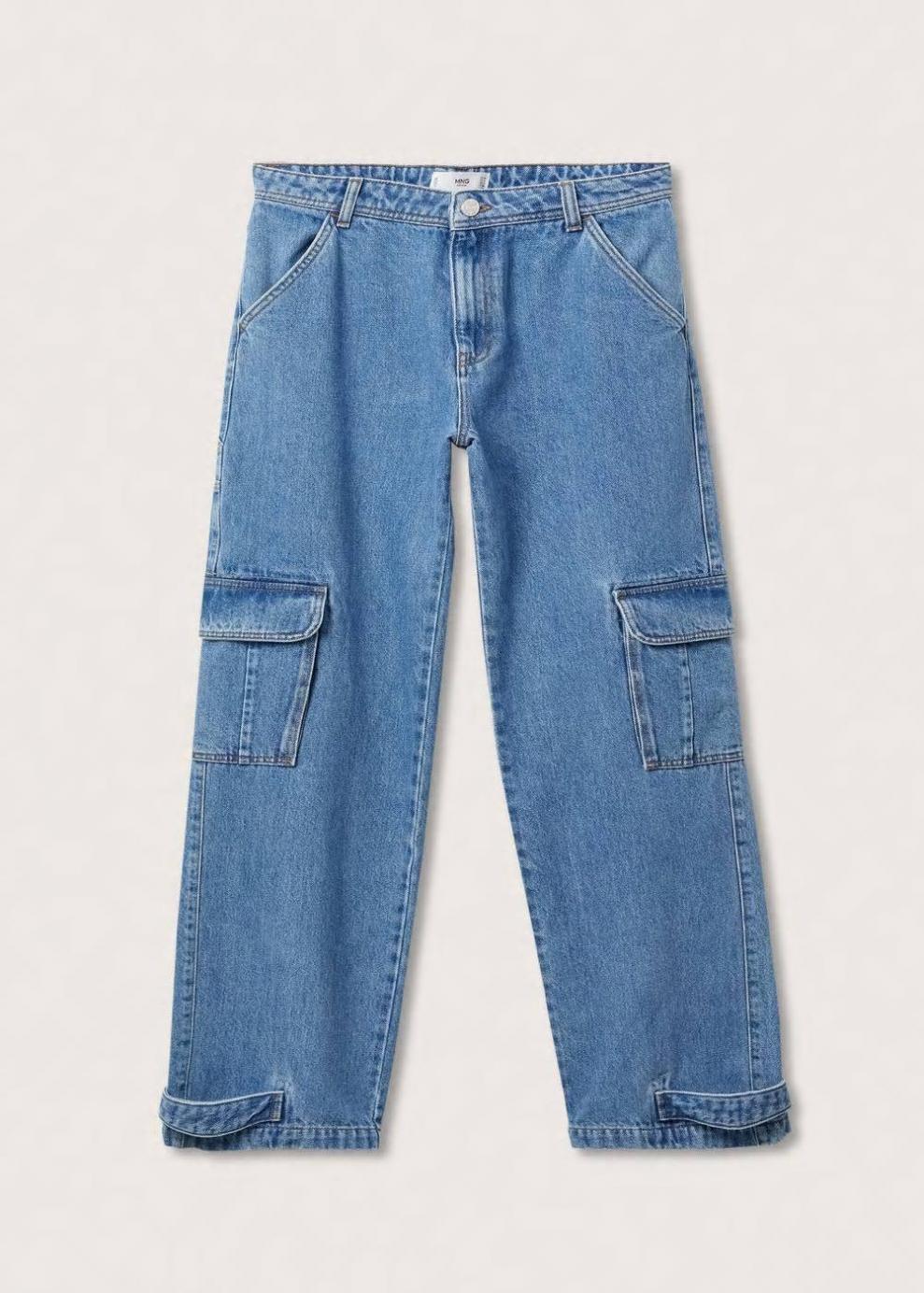 Tejido de algodón estilo tejano vaquero Tejido mezcla de algodón reciclado Diseño recto Diseño largo Diseño cargo Tiro bajo Dos bolsillos laterales Dos bolsillos de parche en la parte posterior Dos bolsillos cargo Ribetes decorativos Bajo ajustable Cierre de cremallera y botón Tallaje más grande de lo habitual Las prendas etiquetadas como Committed son productos que han sido confeccionadas con fibras y/o procesos de producción sostenible, reduciendo así su impacto ambiental. El objetivo de Mango es respaldar la implementación de prácticas más comprometidas con el medio ambiente, aumentando así, el número de prendas sostenibles en su colección.