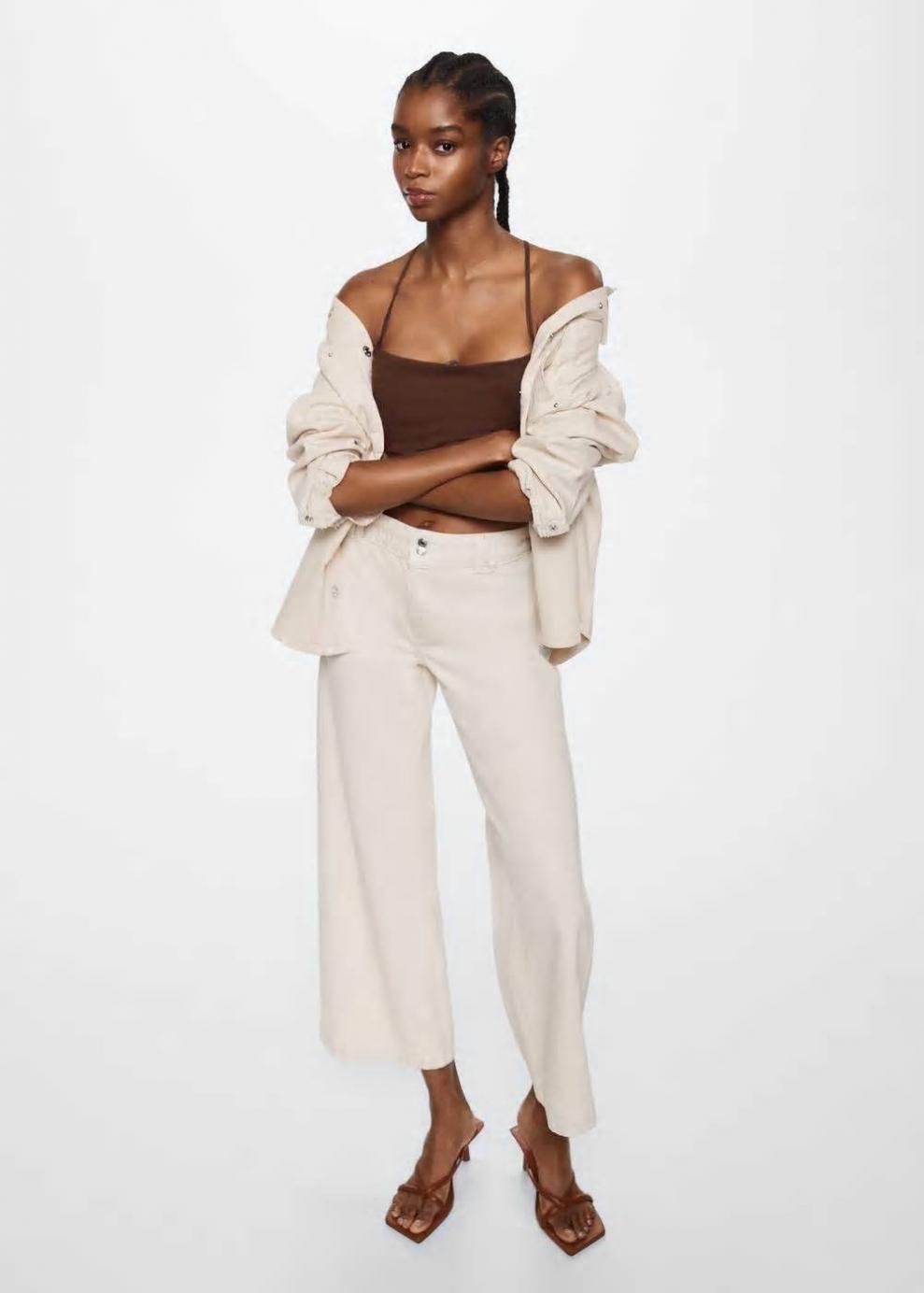 Colección Committed Tejido de algodón estilo tejano vaquero Diseño culotte Diseño crop Tiro medio Trabillas Cinco bolsillos Cierre de cremallera y botones Largo interior 68 cm Las prendas etiquetadas como Committed son productos que han sido confeccionadas con fibras y/o procesos de producción sostenible, reduciendo así su impacto ambiental. El objetivo de Mango es respaldar la implementación de prácticas más comprometidas con el medio ambiente, aumentando así, el número de prendas sostenibles en su colección.
