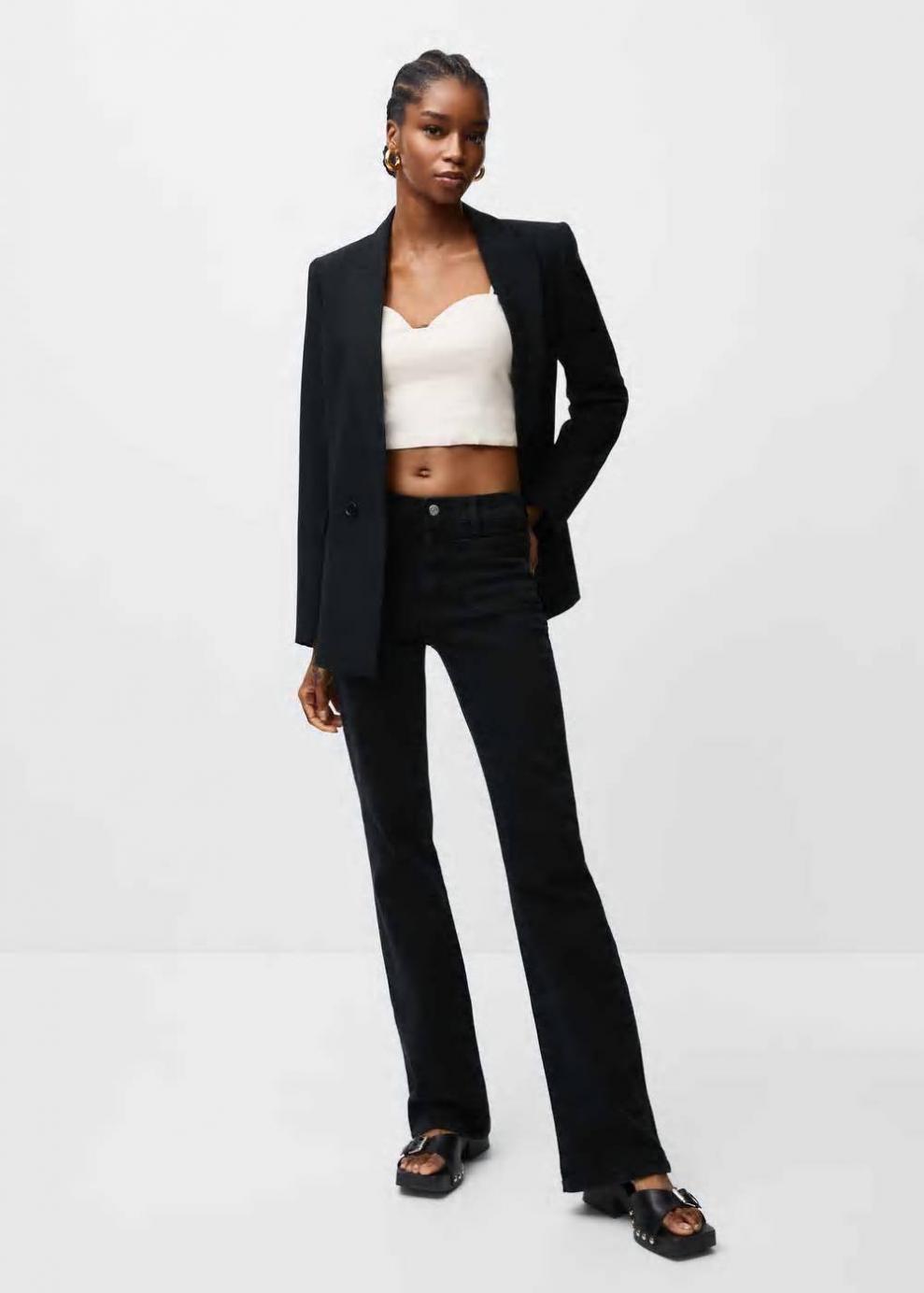 Tamaño mediano Diseño largo Colección Committed Tejido de algodón estilo tejano vaquero Tejido elástico Diseño acampanado Diseño estándar Tiro medio Dos bolsillos delanteros Bolsillos traseros Trabillas Cierre de cremallera y botón Las prendas etiquetadas como Committed son productos que han sido confeccionadas con fibras y/o procesos de producción sostenible, reduciendo así su impacto ambiental. El objetivo de Mango es respaldar la implementación de prácticas más comprometidas con el medio ambiente, aumentando así, el número de prendas sostenibles en su colección.