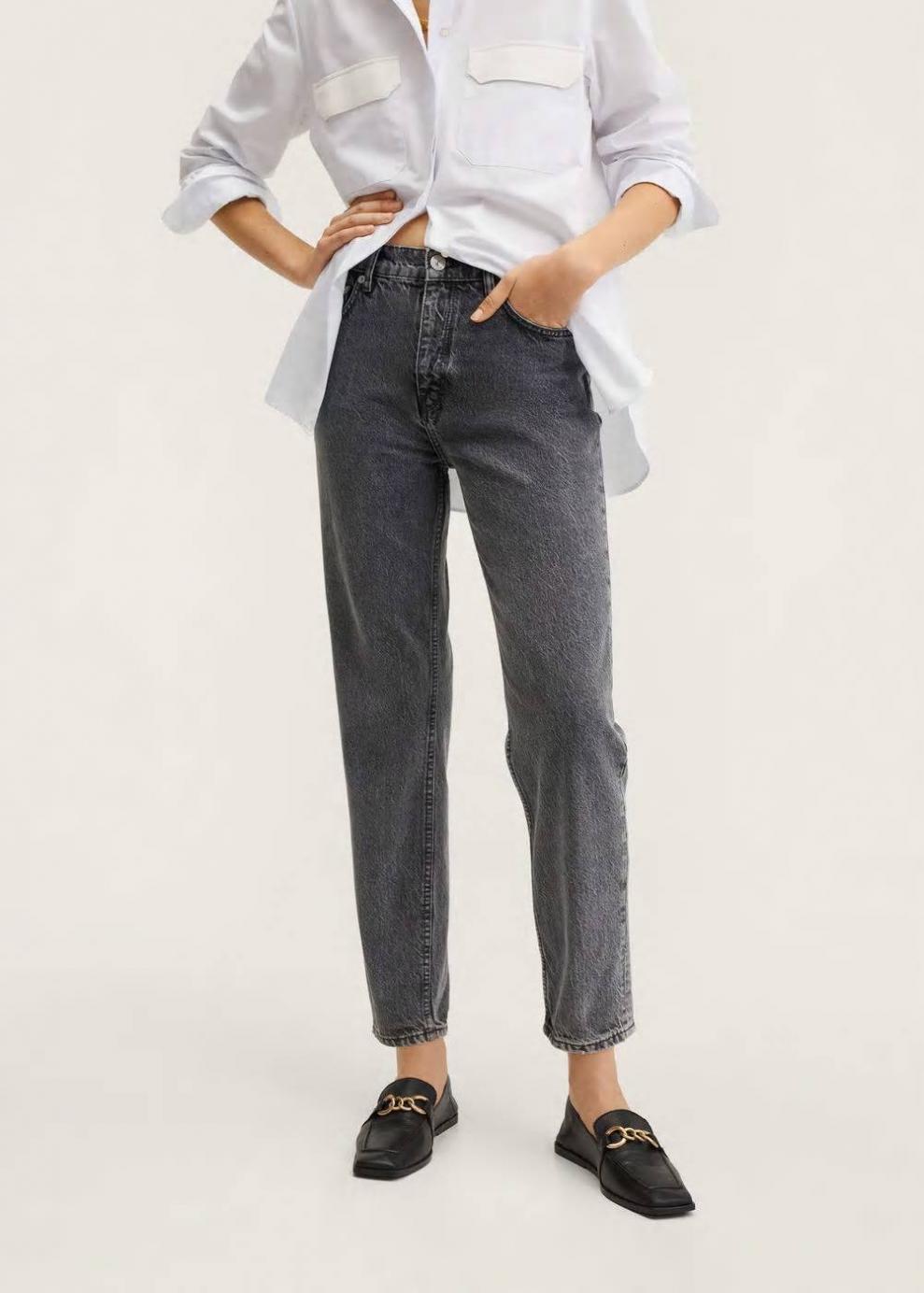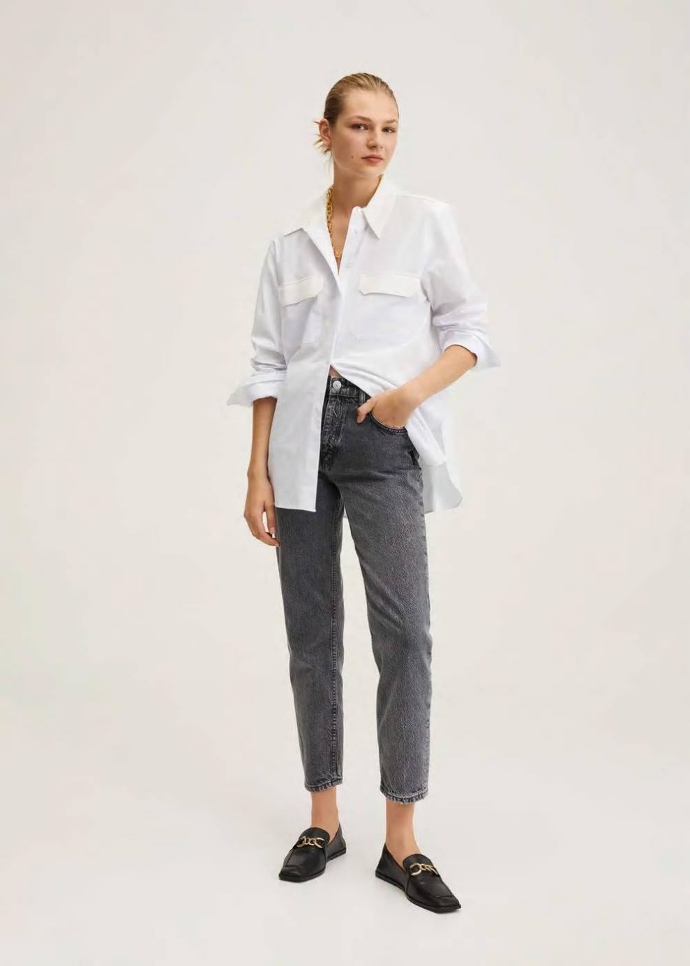 Colección Committed Tejido de algodón estilo tejano vaquero Mom-fit Tiro alto Ankle brace Trabillas Cinco bolsillos Cierre de cremallera y botón Las prendas etiquetadas como Committed son productos que han sido confeccionadas con fibras y/o procesos de producción sostenible, reduciendo así su impacto ambiental. El objetivo de Mango es respaldar la implementación de prácticas más comprometidas con el medio ambiente, aumentando así, el número de prendas sostenibles en su colección.
