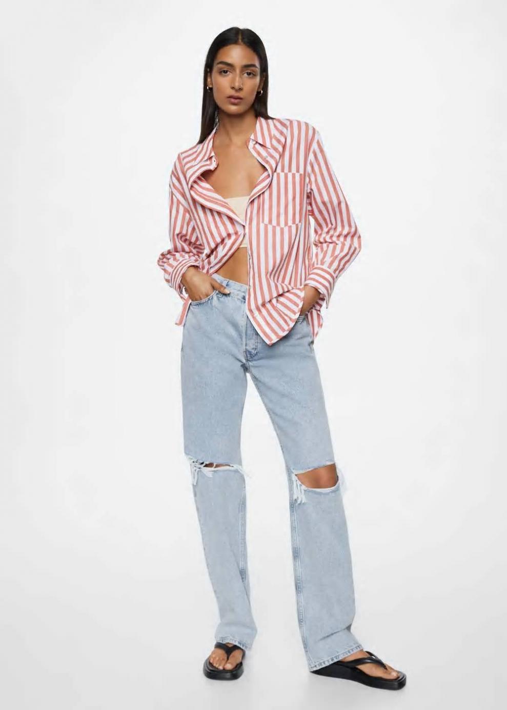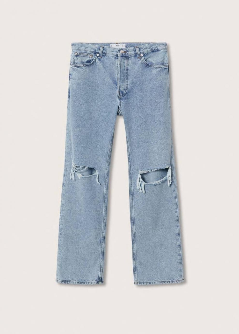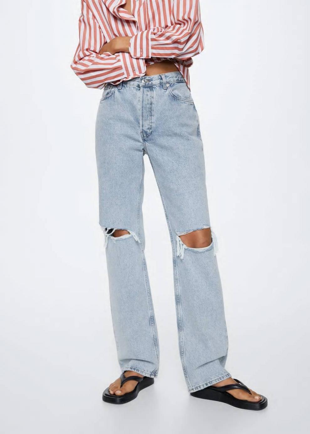 Colección Committed 100% Algodón Tejido mezcla de algodón reciclado Tejido de algodón estilo tejano vaquero Diseño largo Diseño recto Tiro alto Detalle rotos decorativos Trabillas Cinco bolsillos Cierre de cremallera y botón Disponible Plus Tallaje más grande de lo habitual, se recomienda comprar una talla más pequeña Largo interior 83 cmLas prendas etiquetadas como Committed son productos que han sido confeccionadas con fibras y/o procesos de producción sostenible, reduciendo así su impacto ambiental. El objetivo de Mango es respaldar la implementación de prácticas más comprometidas con el medio ambiente, aumentando así, el número de prendas sostenibles en su colección.