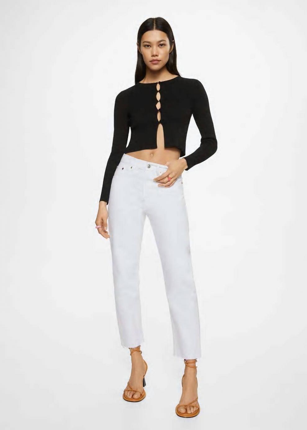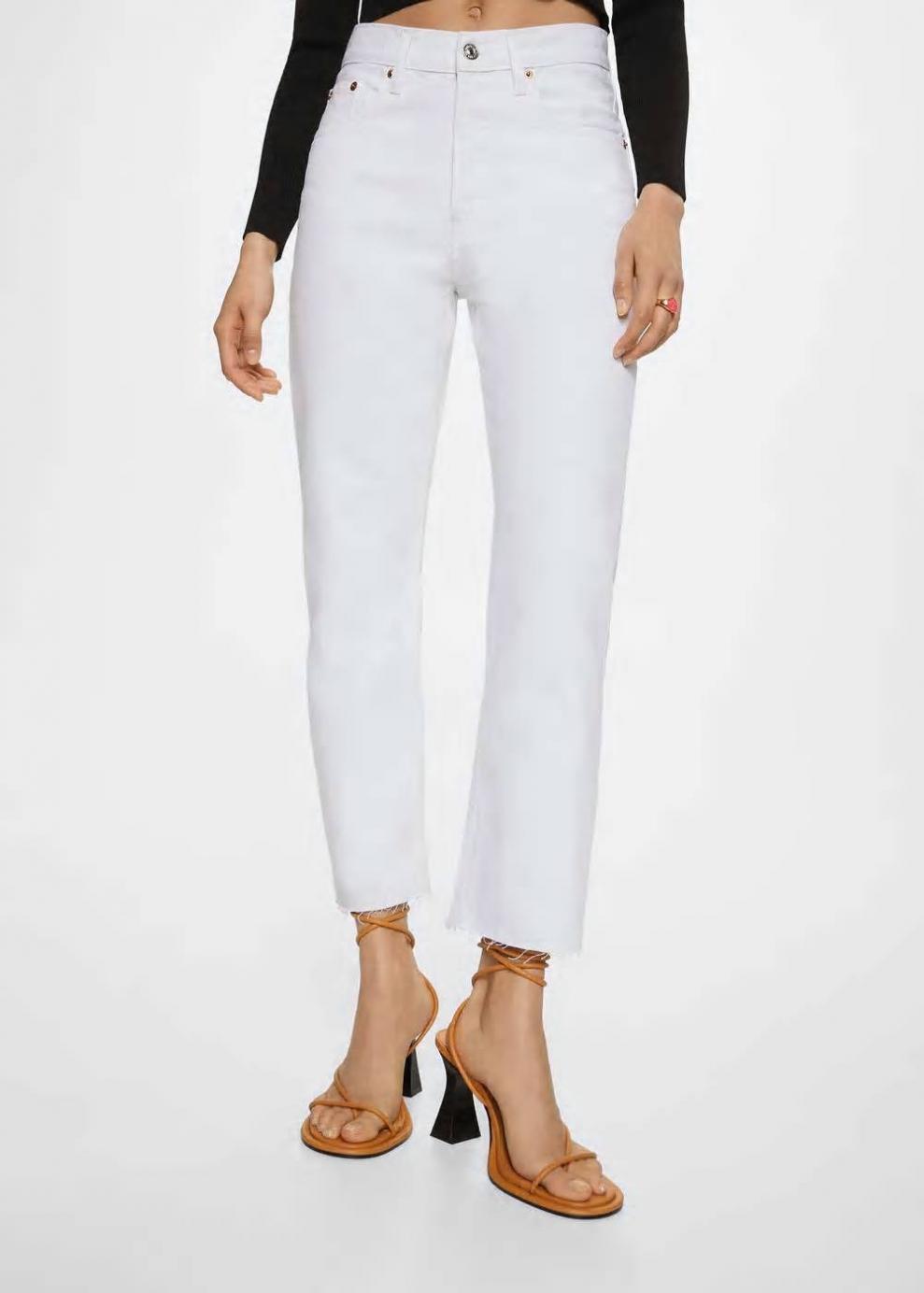 Colección Committed 100% Algodón Tejido de algodón estilo tejano vaquero Diseño recto Diseño crop Tiro alto Trabillas Cinco bolsillos Cierre de botón Bajo deshilachado Disponible Plus Tallaje más grande de lo habitual Las prendas etiquetadas como Committed son productos que han sido confeccionadas con fibras y/o procesos de producción sostenible, reduciendo así su impacto ambiental. El objetivo de Mango es respaldar la implementación de prácticas más comprometidas con el medio ambiente, aumentando así, el número de prendas sostenibles en su colección.