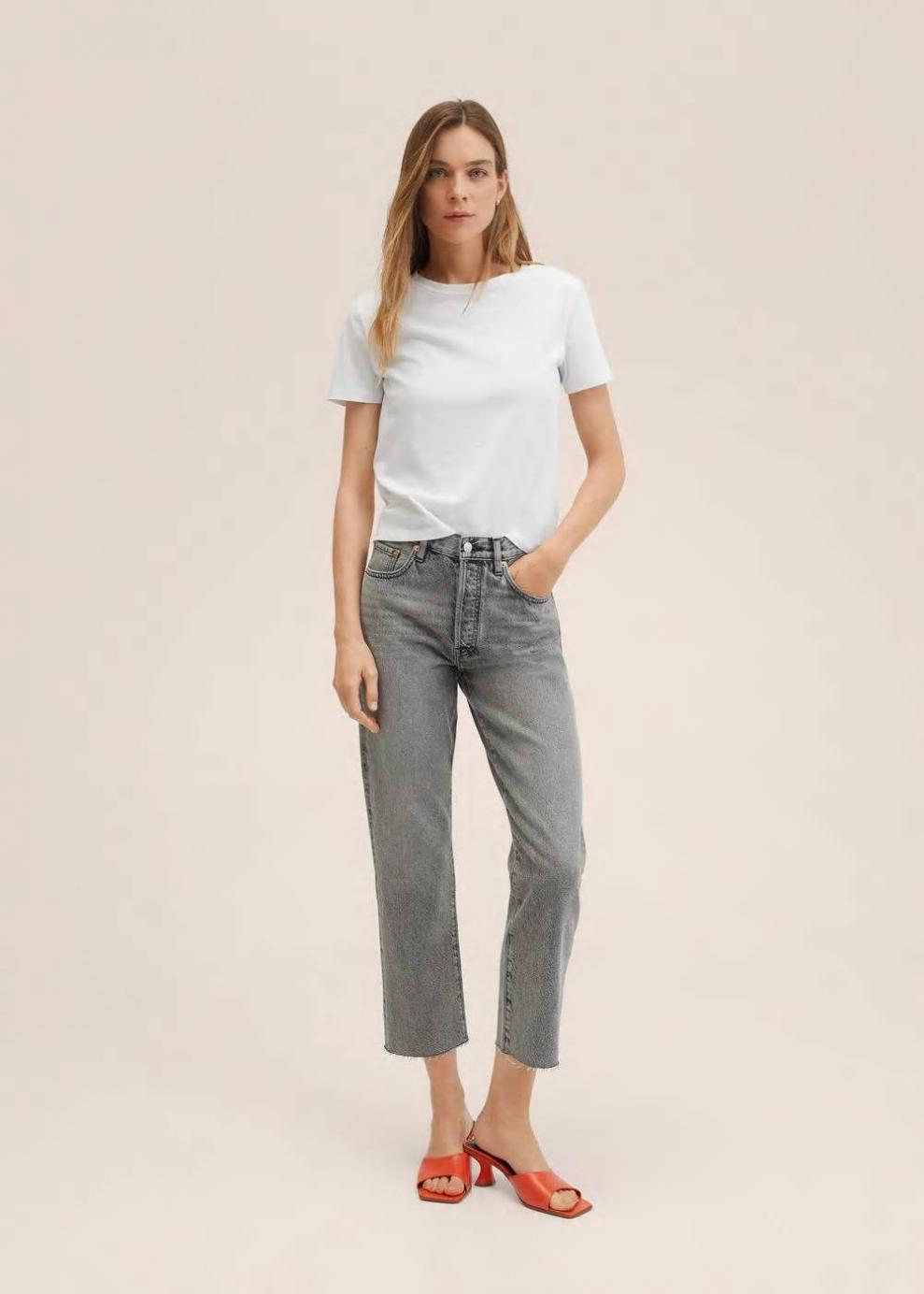 Mujer Jeans rectos tiro alto crop Gris | Vaqueros Mango