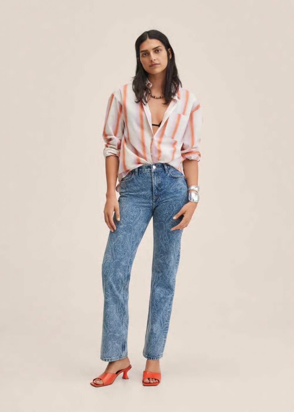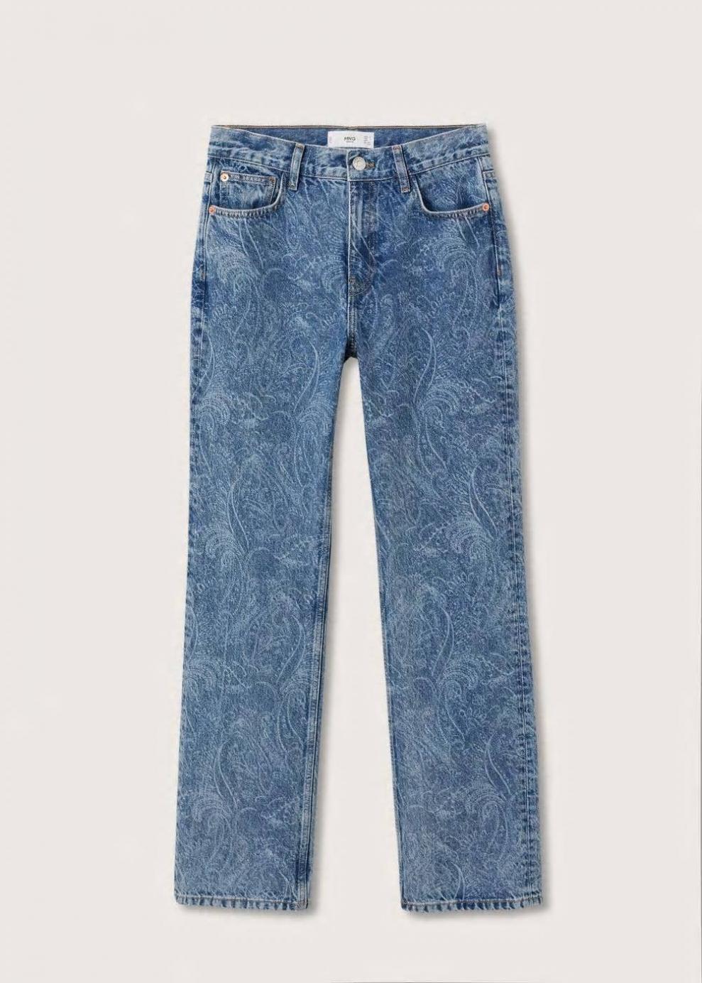 Tejido de algodón estilo tejano vaquero Tejido mezcla de algodón reciclado Estampado paisley Diseño recto Diseño largo Tiro medio Trabillas Cinco bolsillos Cierre de cremallera y botón Las prendas etiquetadas como Committed son productos que han sido confeccionadas con fibras y/o procesos de producción sostenible, reduciendo así su impacto ambiental. El objetivo de Mango es respaldar la implementación de prácticas más comprometidas con el medio ambiente, aumentando así, el número de prendas sostenibles en su colección.