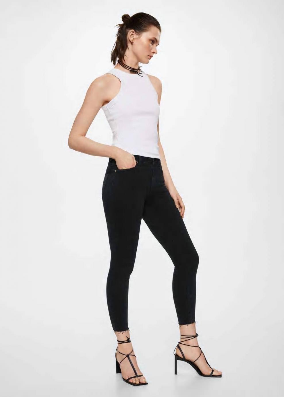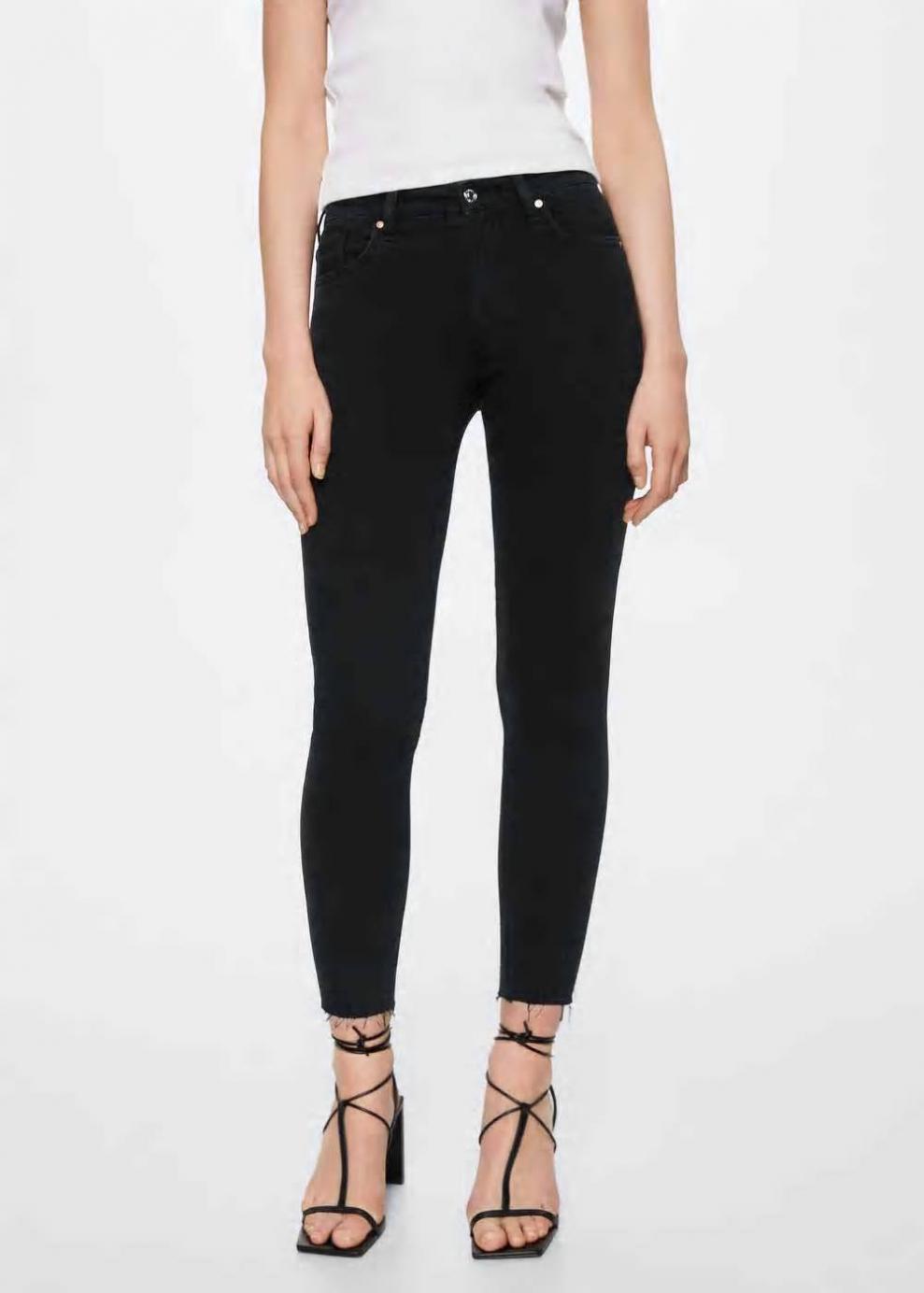 Colección Committed Tejido de algodón estilo tejano vaquero Tejido elástico Corte skinny Diseño crop Tiro medio Terminaciones deshilachadas Trabillas Cinco bolsillos Cierre de cremallera y botón Disponible Plus Largo interior 68 cm Las prendas etiquetadas como Committed son productos que han sido confeccionadas con fibras y/o procesos de producción sostenible, reduciendo así su impacto ambiental. El objetivo de Mango es respaldar la implementación de prácticas más comprometidas con el medio ambiente, aumentando así, el número de prendas sostenibles en su colección.
