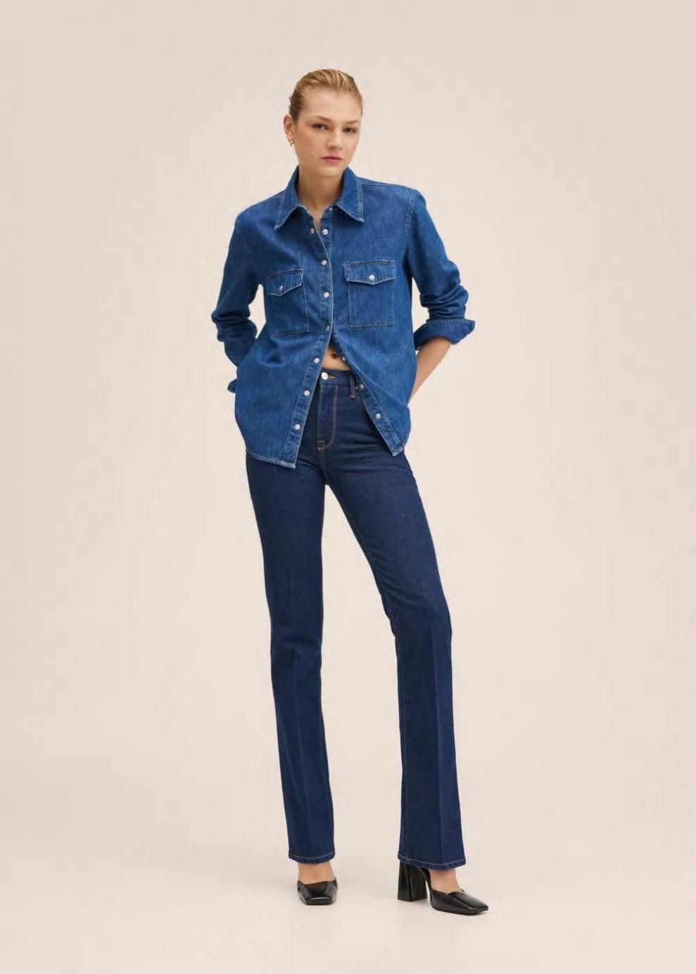 Colección Committed Tejido de algodón estilo tejano vaquero Tejido elástico Diseño largo Estilo flare Tiro medio Cinco bolsillos Cierre de cremallera y botón Las prendas etiquetadas como Committed son productos que han sido confeccionadas con fibras y/o procesos de producción sostenible, reduciendo así su impacto ambiental. El objetivo de Mango es respaldar la implementación de prácticas más comprometidas con el medio ambiente, aumentando así, el número de prendas sostenibles en su colección.