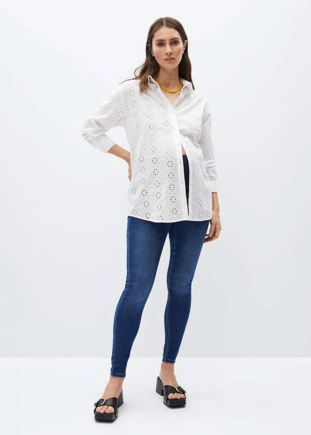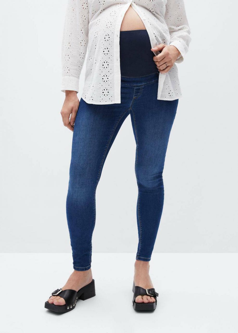 Exclusivo Online Tejido de algodón estilo tejano vaquero Corte skinny Diseño largo Tiro alto Trabillas Cinco bolsillos Cintura elástica Banda de punto elástica en la cintura para mayor comodidad y sujeción Mango te viste también durante el embarazo con la colección Maternity. Básicos imprescindibles para conseguir looks cómodos y con estilo que se adaptarán a tu cuerpo en la etapa más especial.