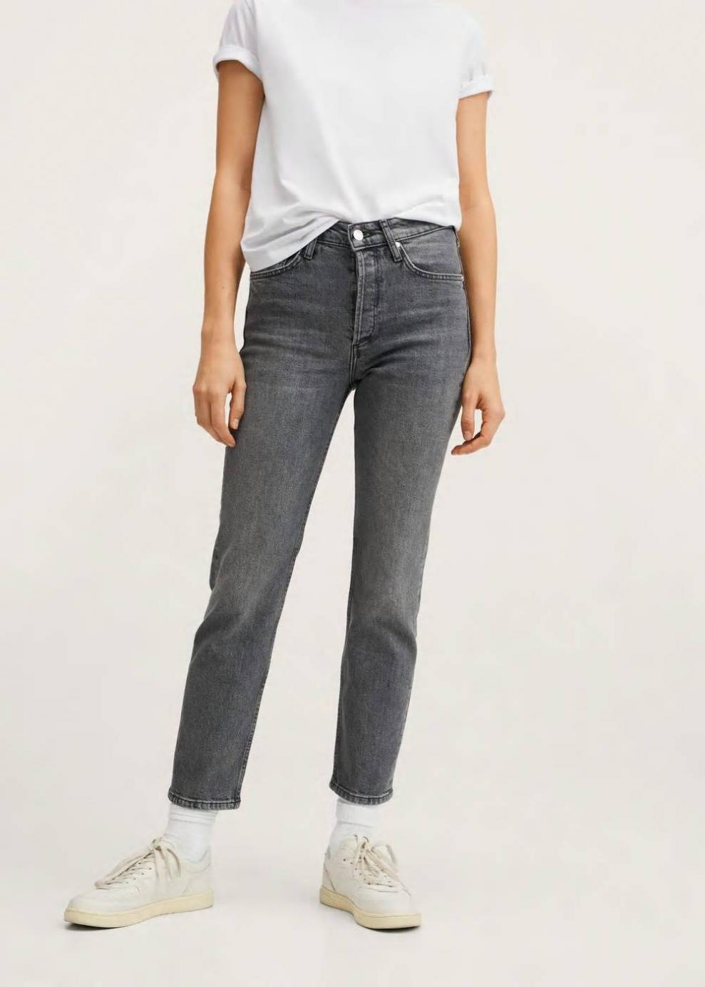 Mujer Jeans slim tiro medio crop Gris | Vaqueros Mango