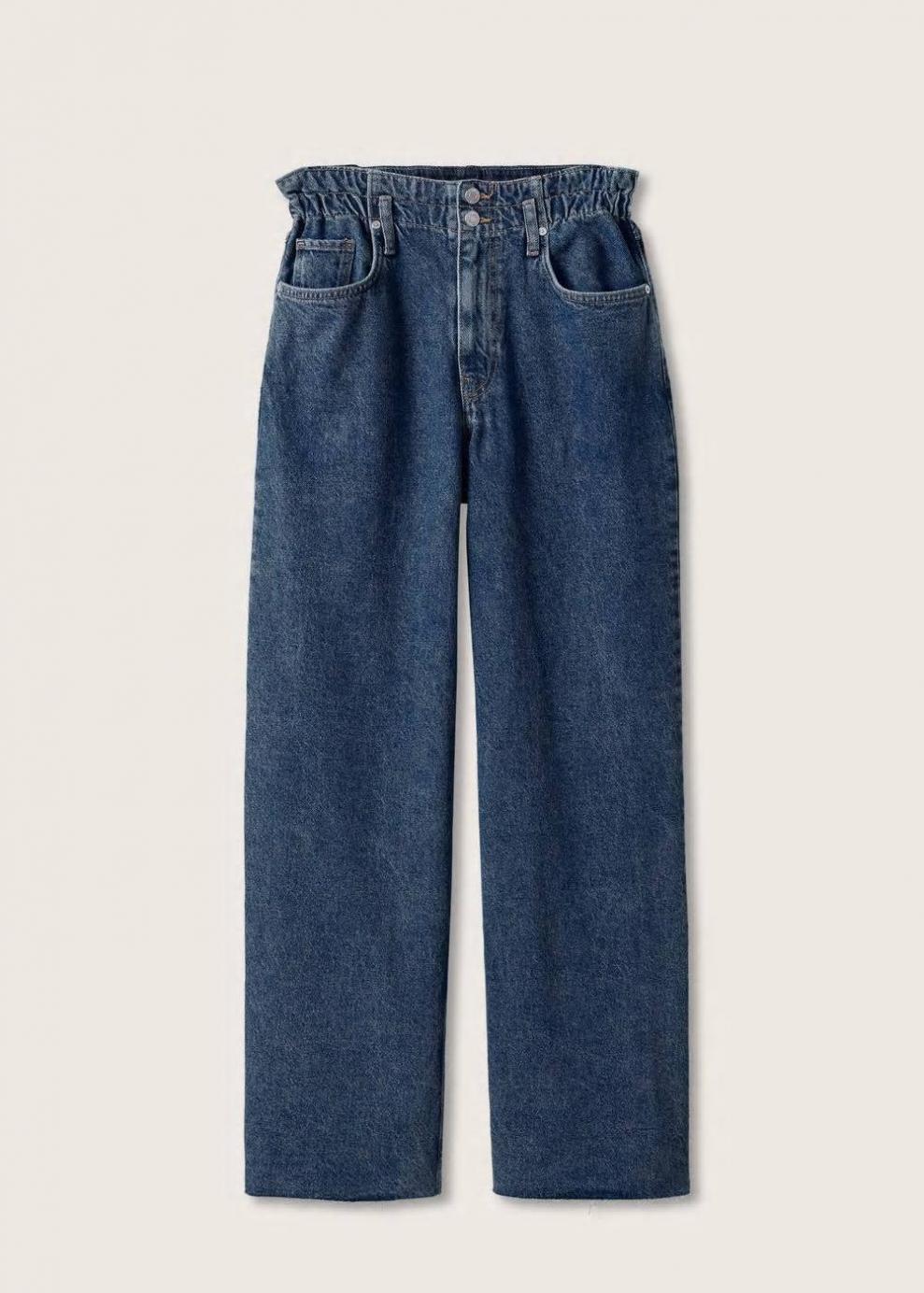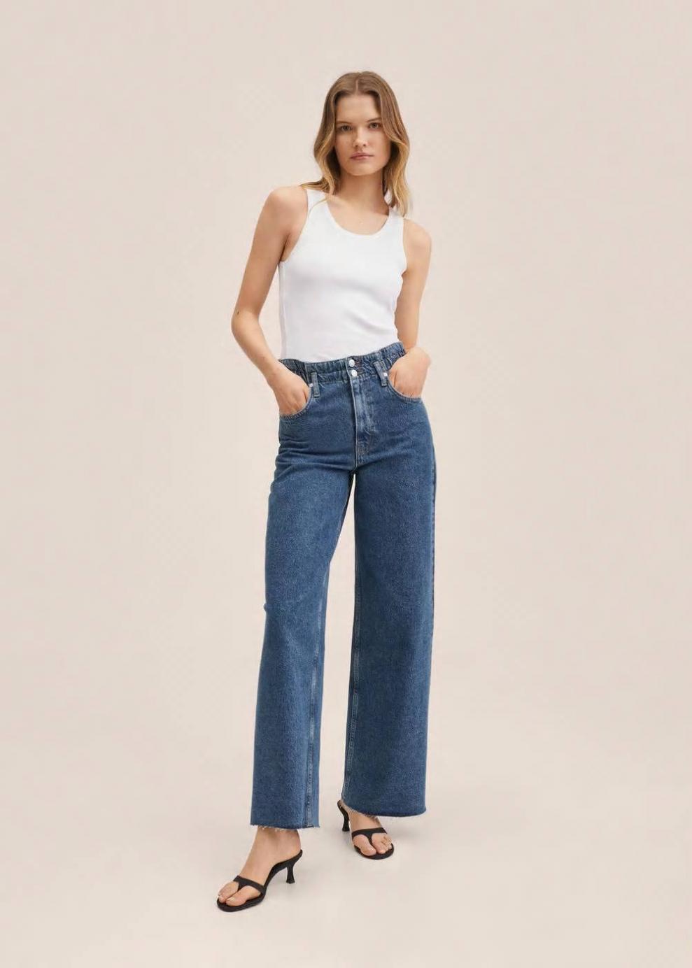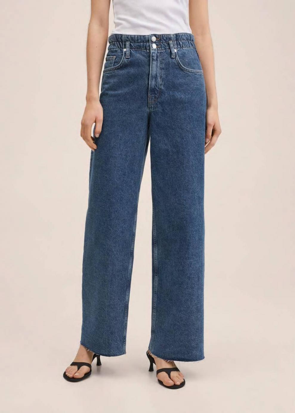 Tamaño mediano Caña ancha Goma elástica Colección Committed Tejido mezcla de algodón reciclado Tejido de algodón estilo tejano vaquero Diseño wideleg Diseño largo Tiro alto Cintura elástica Bajo deshilachado Trabillas Cinco bolsillos Cierre de botones Las prendas etiquetadas como Committed son productos que han sido confeccionadas con fibras y/o procesos de producción sostenible, reduciendo así su impacto ambiental. El objetivo de Mango es respaldar la implementación de prácticas más comprometidas con el medio ambiente, aumentando así, el número de prendas sostenibles en su colección.