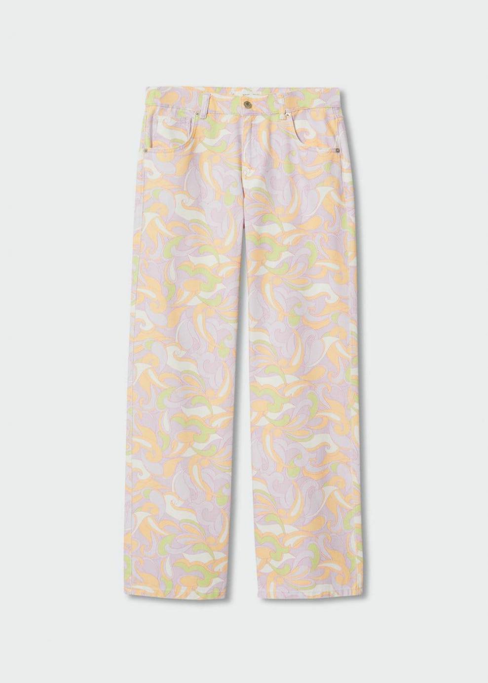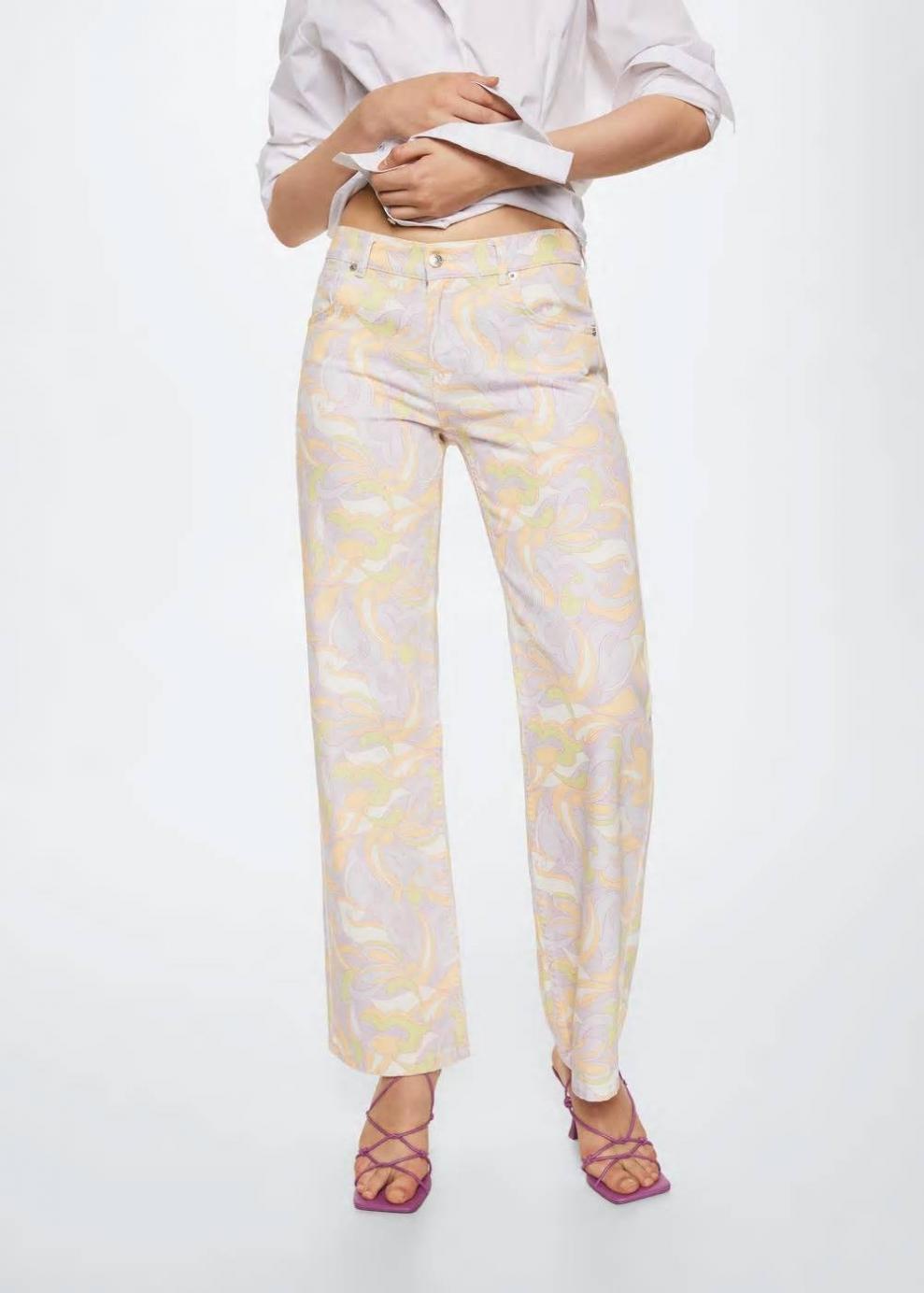Colección Committed 100% Algodón Tejido de algodón estilo tejano vaquero Estampado multicolor Diseño wideleg Diseño largo Tiro bajo Trabillas Cinco bolsillos Cierre de cremallera y botón Largo interior 80 cm Las prendas etiquetadas como Committed son productos que han sido confeccionadas con fibras y/o procesos de producción sostenible, reduciendo así su impacto ambiental. El objetivo de Mango es respaldar la implementación de prácticas más comprometidas con el medio ambiente, aumentando así, el número de prendas sostenibles en su colección.