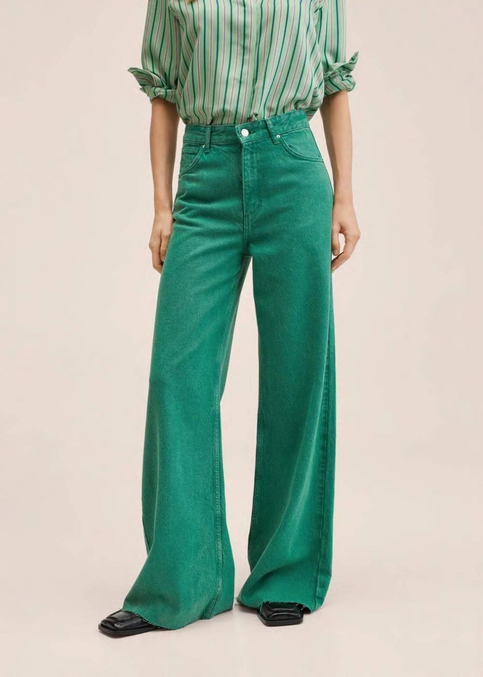 Mujer Jeans wideleg lavado color Verde | Vaqueros Mango