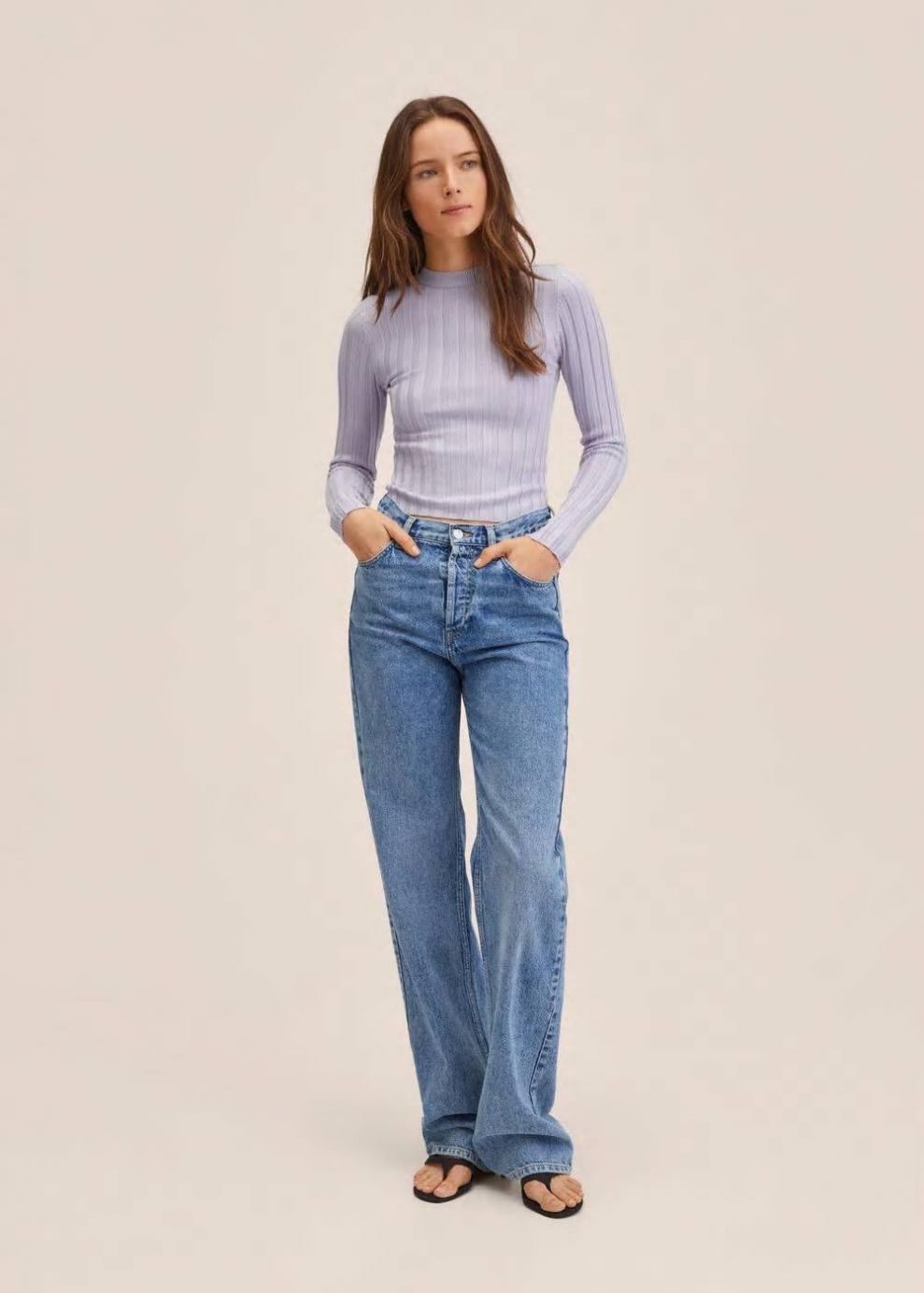 Tejido de punto fino Tejido de canalé Diseño entallado Cuello redondo Manga larga Abertura en la espalda Detalle fruncido en la parte posterior…