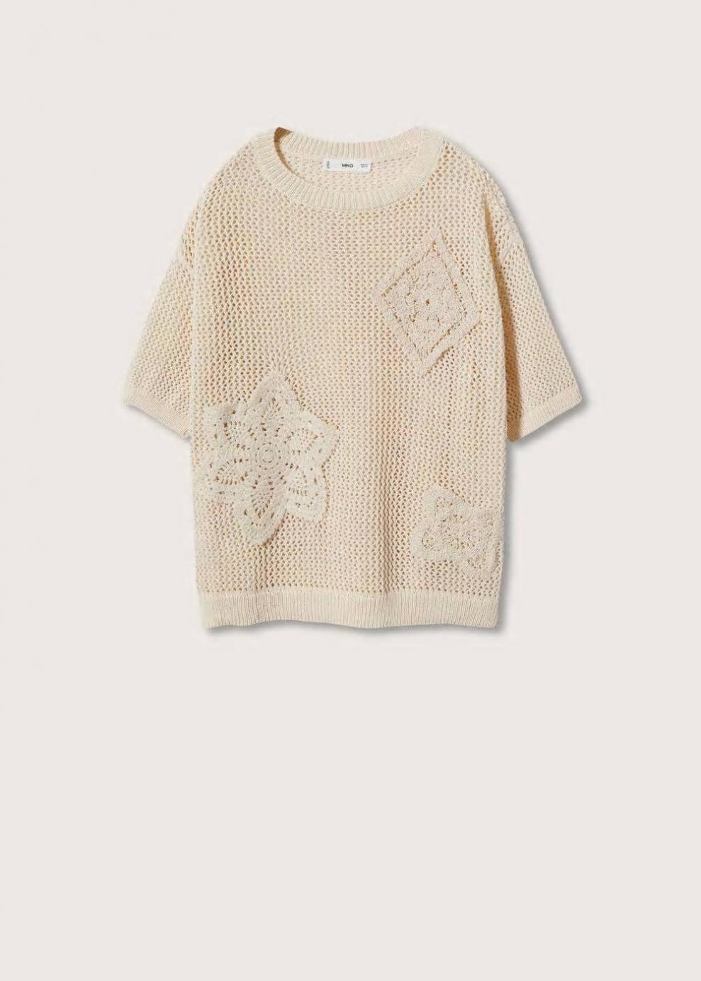 Tejido de algodón Detalles calados Detalles bordados Diseño ancho Manga corta