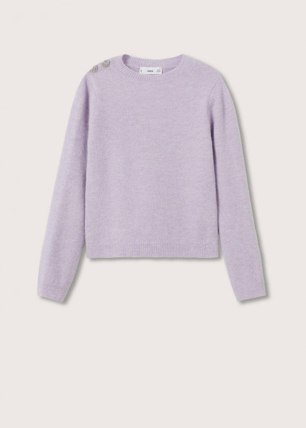 Tejido de punto Punto medio Diseño estándar Cierre en el hombro Diseño recto Cuello redondo Manga larga Botones efecto joya Botones decorativos