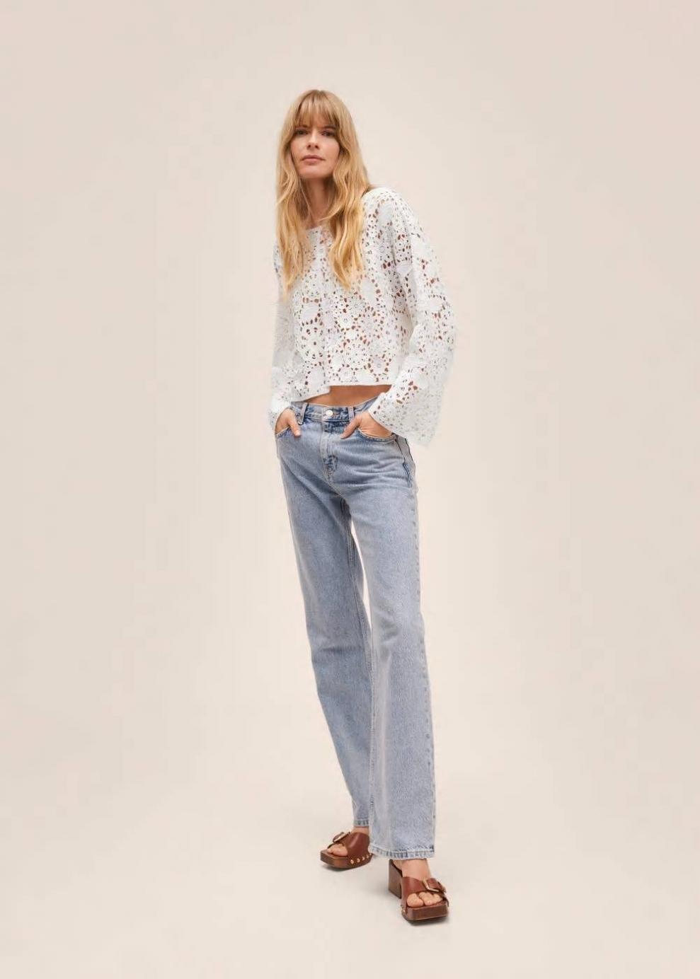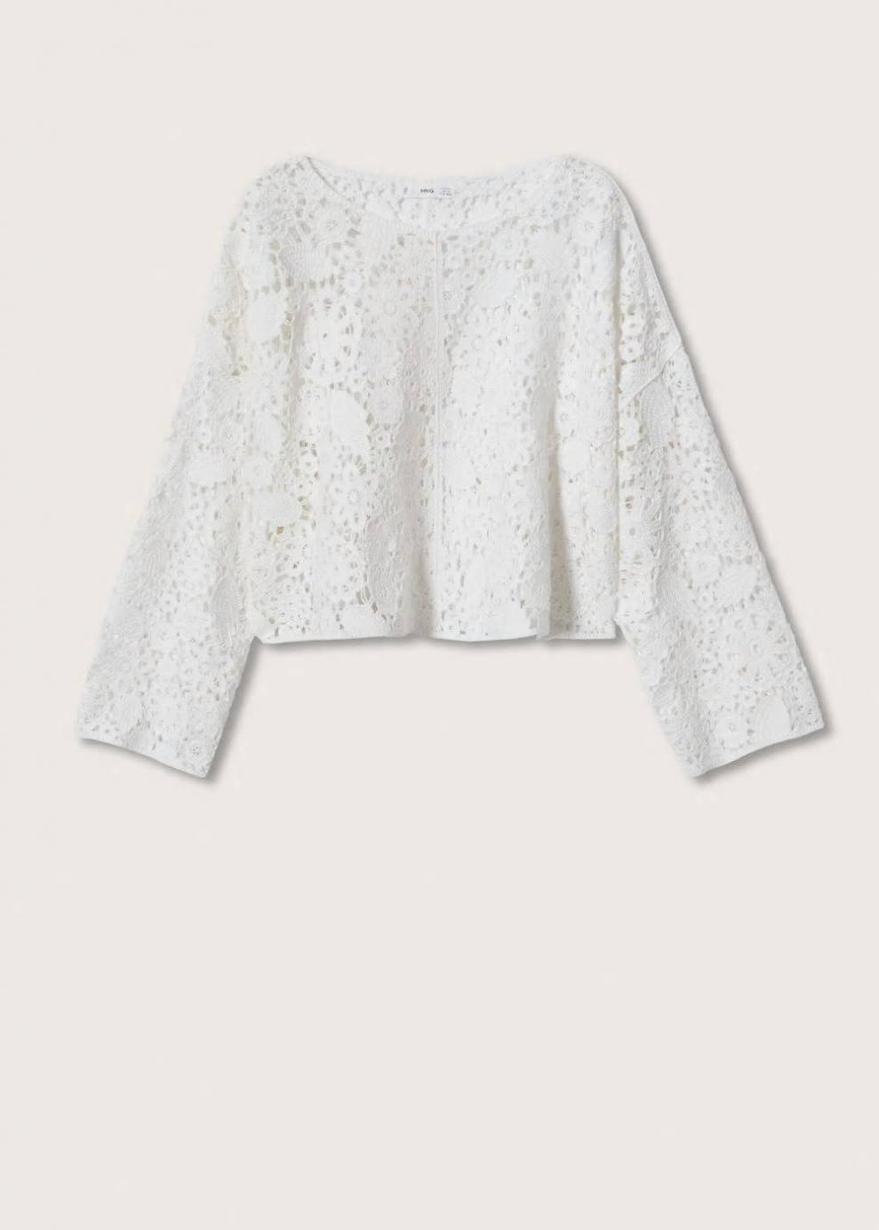 Tejido de punto Tejido mezcla de algodón Tejido calado Diseño floral Diseño oversize Diseño corto Cuello barco Manga larga