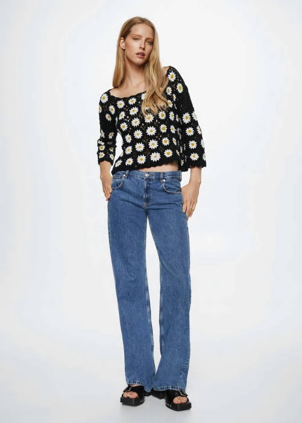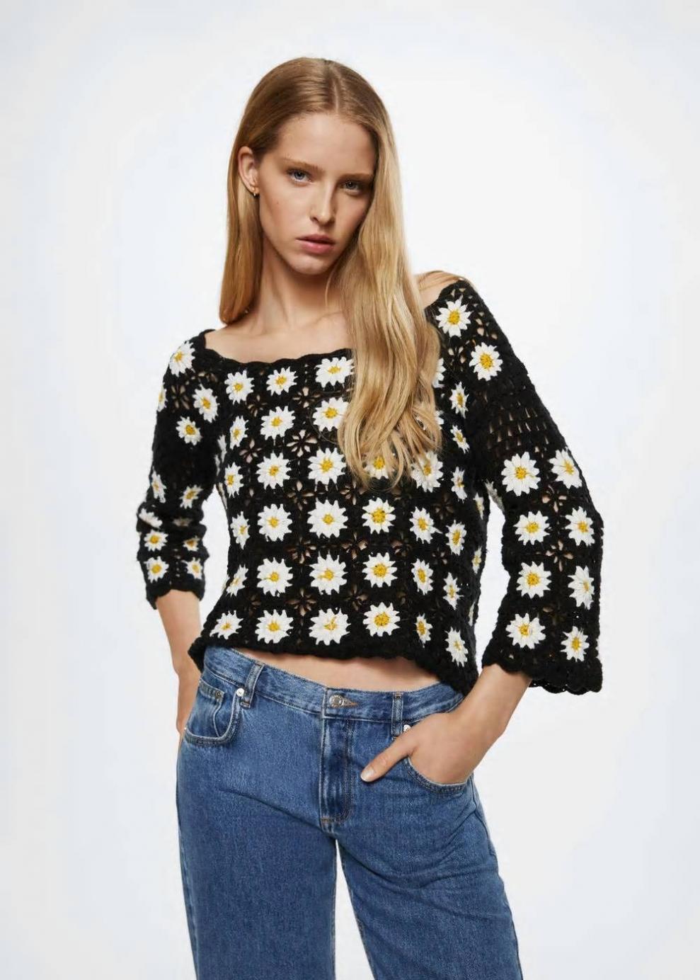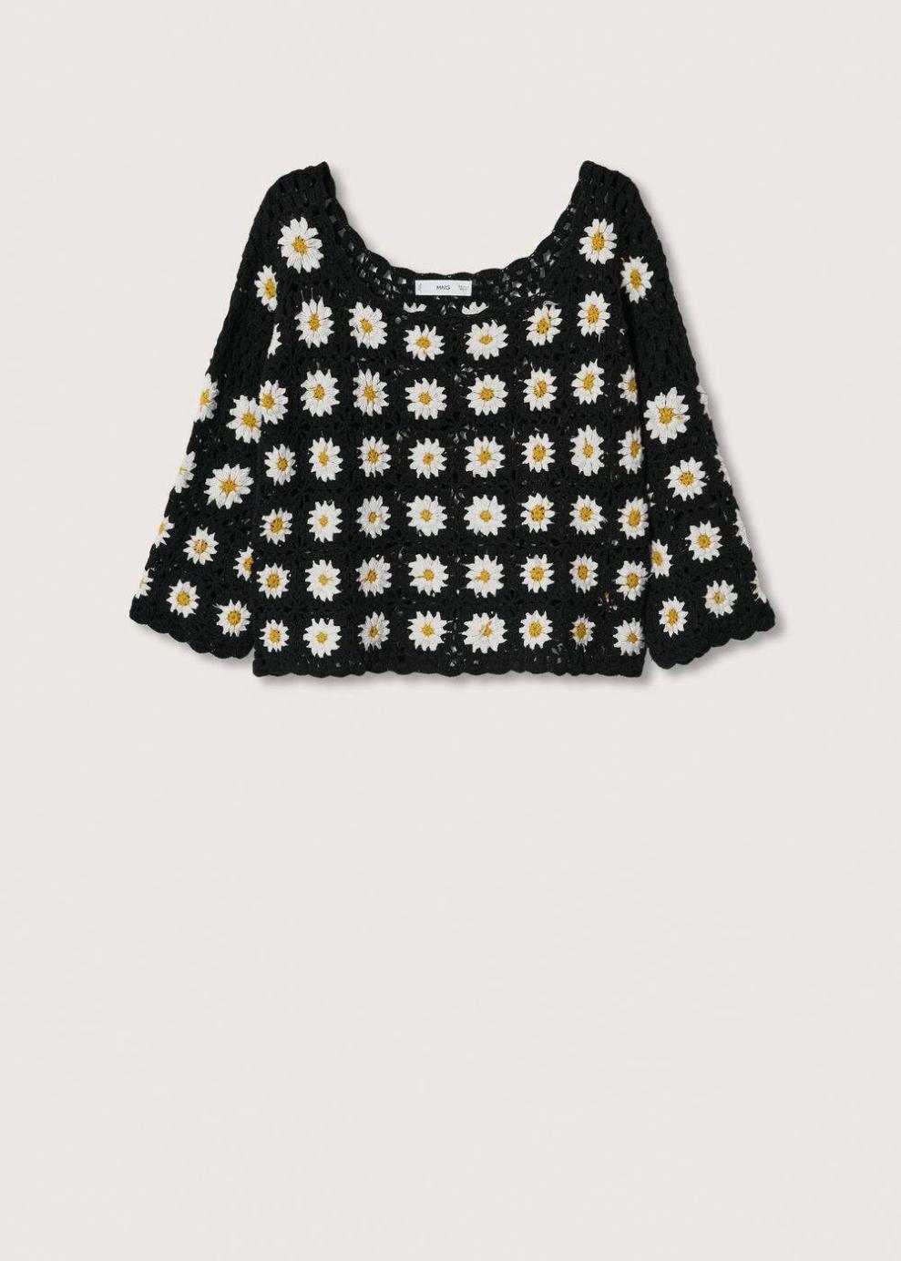 Tejido de crochet Tejido con algodón Tejido de punto Diseño corto Detalles calados Manga larga Cuello redondo…