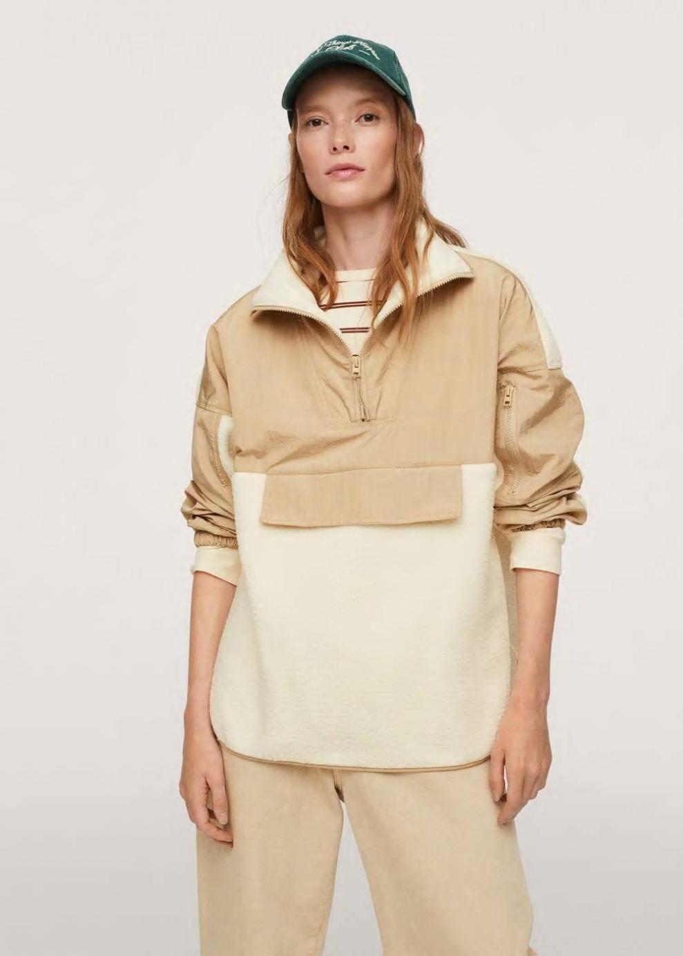 Extra warm fabric: Tejido técnico que mantiene la temperaturaTejido efecto borreguito Diseño combinado Diseño oversize Cuello alto cremallera Manga larga