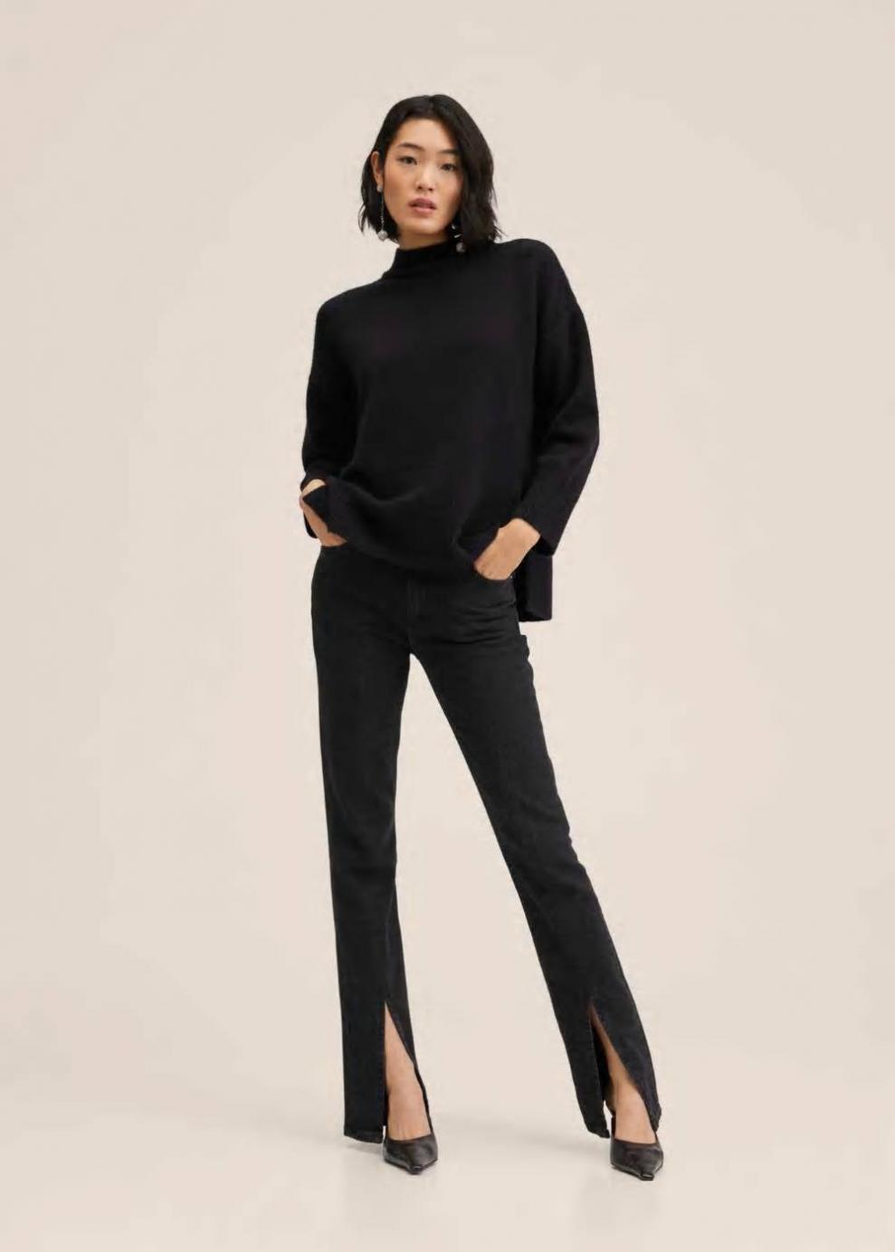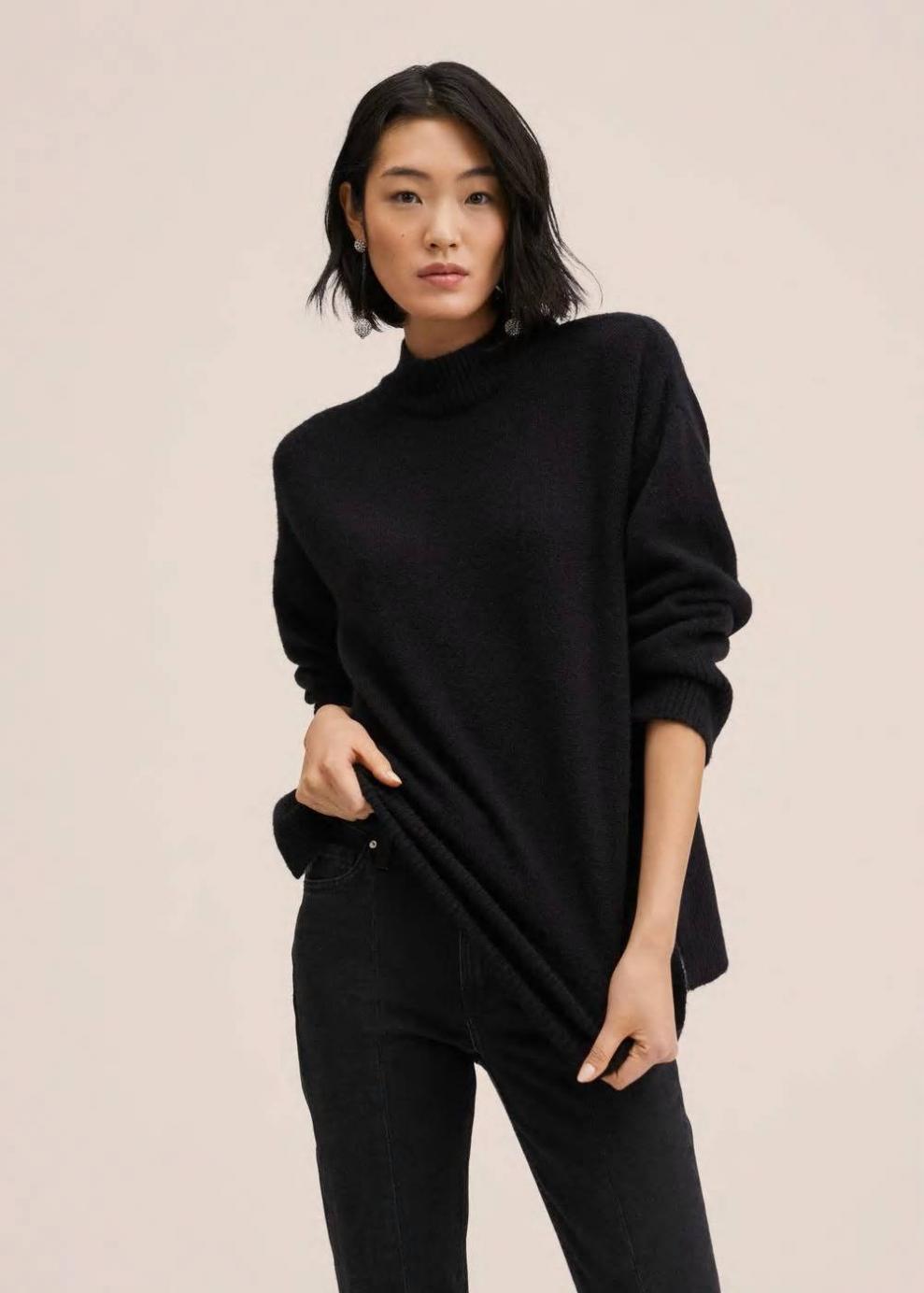 Tejido de punto Cuello redondo Sin cierre Punto medio Diseño estándar Diseño recto Cuello perkins Manga larga Aberturas laterales…