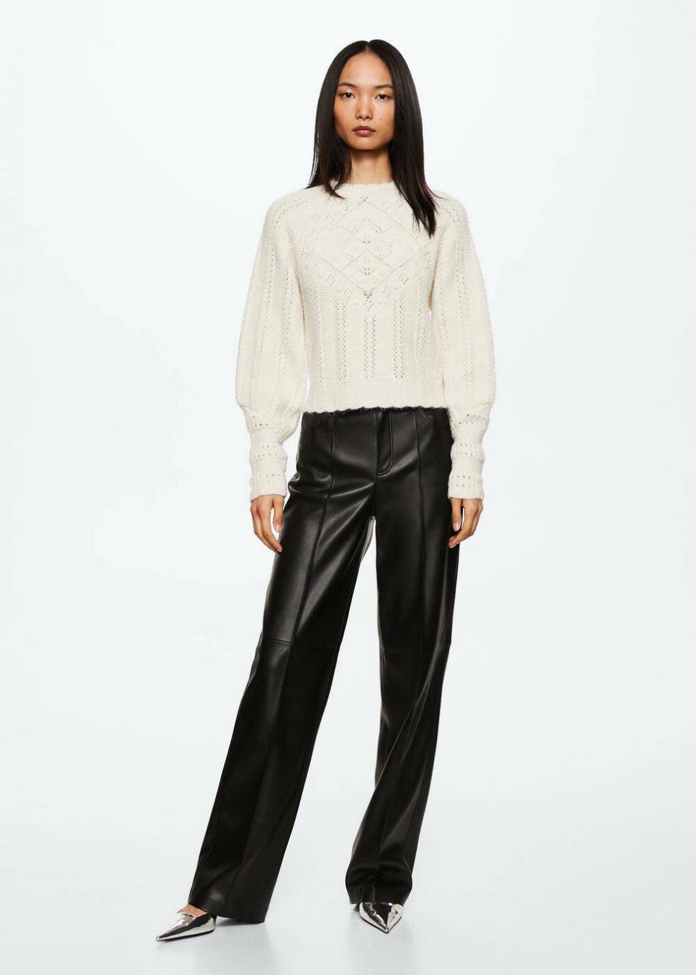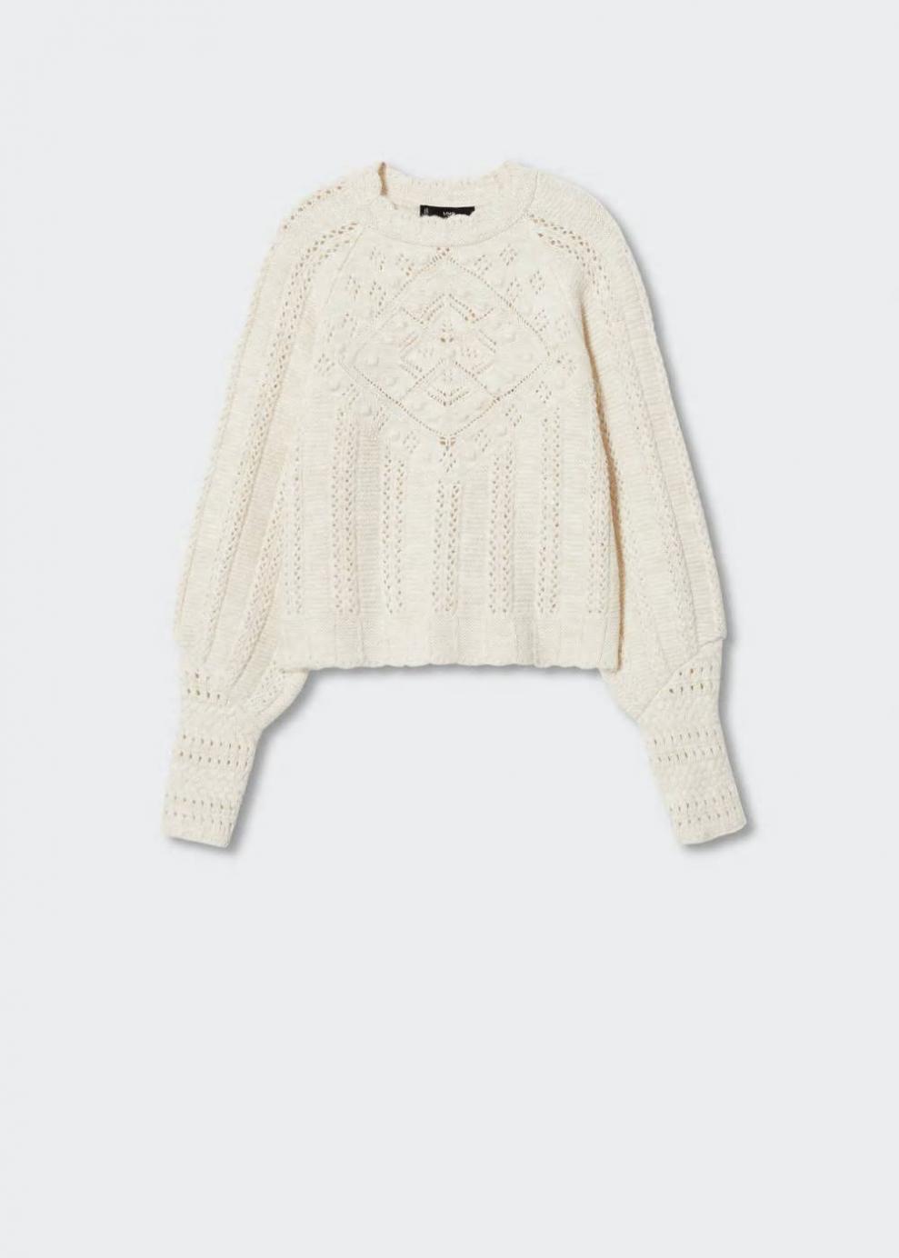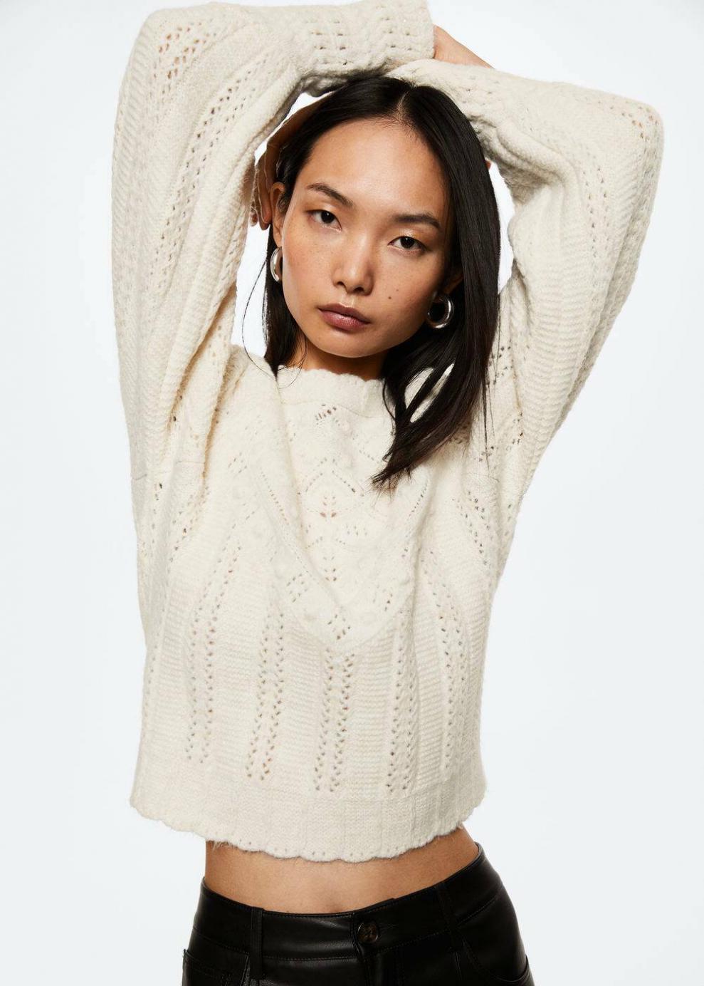 Colección Committed Tejido de punto calado Diseño recto Diseño largo Cuello perkins Manga larga Las prendas etiquetadas como Committed son productos que han sido confeccionadas con fibras y/o procesos de producción sostenible, reduciendo así su impacto ambiental. El objetivo de Mango es respaldar la implementación de prácticas más comprometidas con el medio ambiente, aumentando así, el número de prendas sostenibles en su colección.