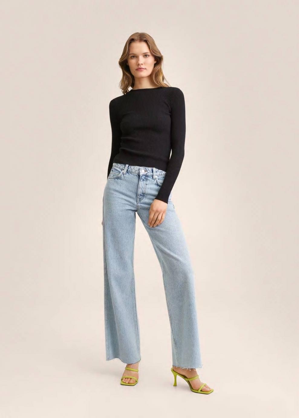 Mujer Jersey punto canalé Negro | Cárdigans y jerséis Mango