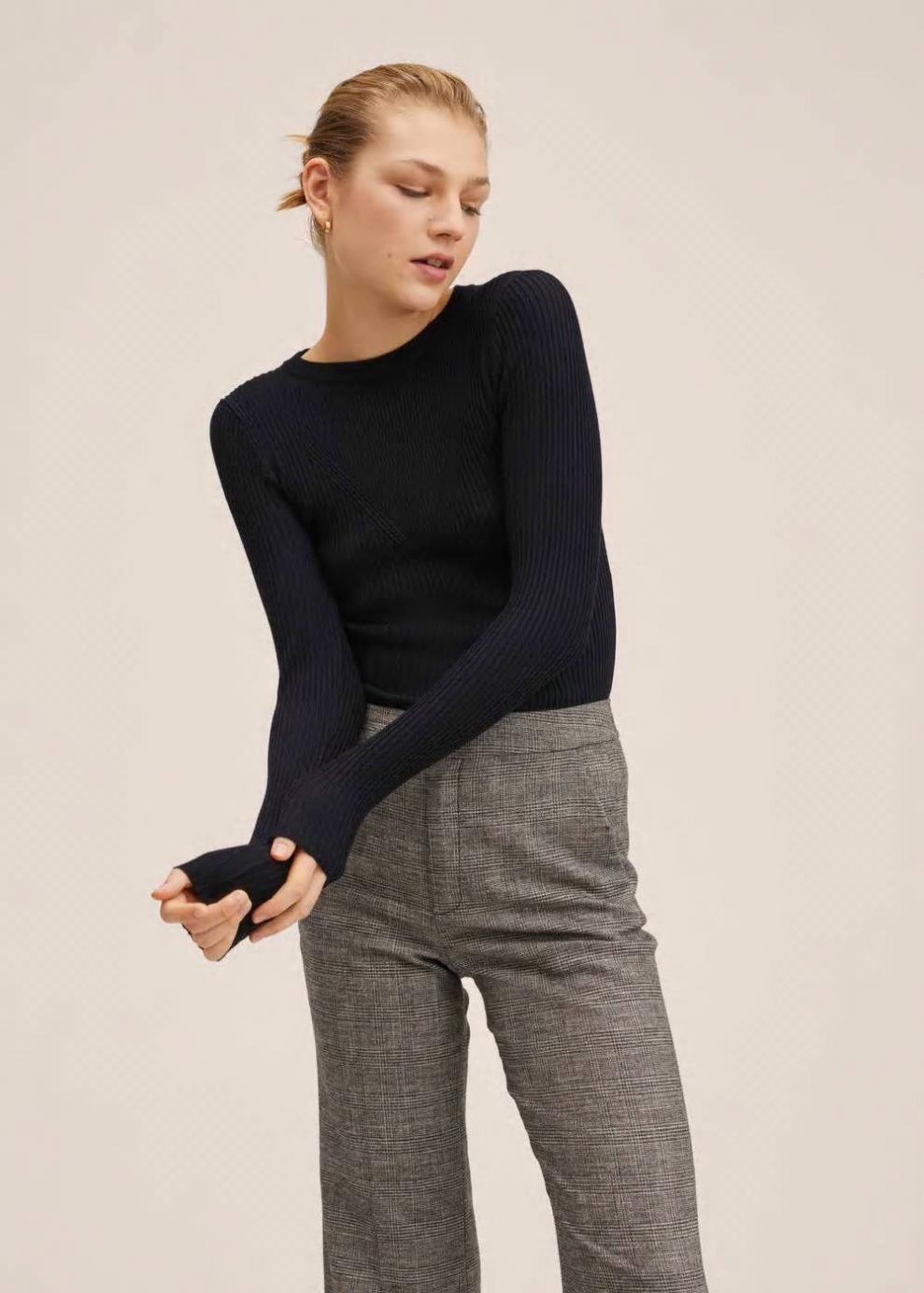 Tejido de punto fino Slim fit Sin cierre Diseño estándar Diseño canalé Diseño entallado Cuello redondo Manga larga Costuras decorativas Las prendas etiquetadas como Committed son productos que han sido confeccionadas con fibras y/o procesos de producción sostenible, reduciendo así su impacto ambiental. El objetivo de Mango es respaldar la implementación de prácticas más comprometidas con el medio ambiente, aumentando así, el número de prendas sostenibles en su colección.