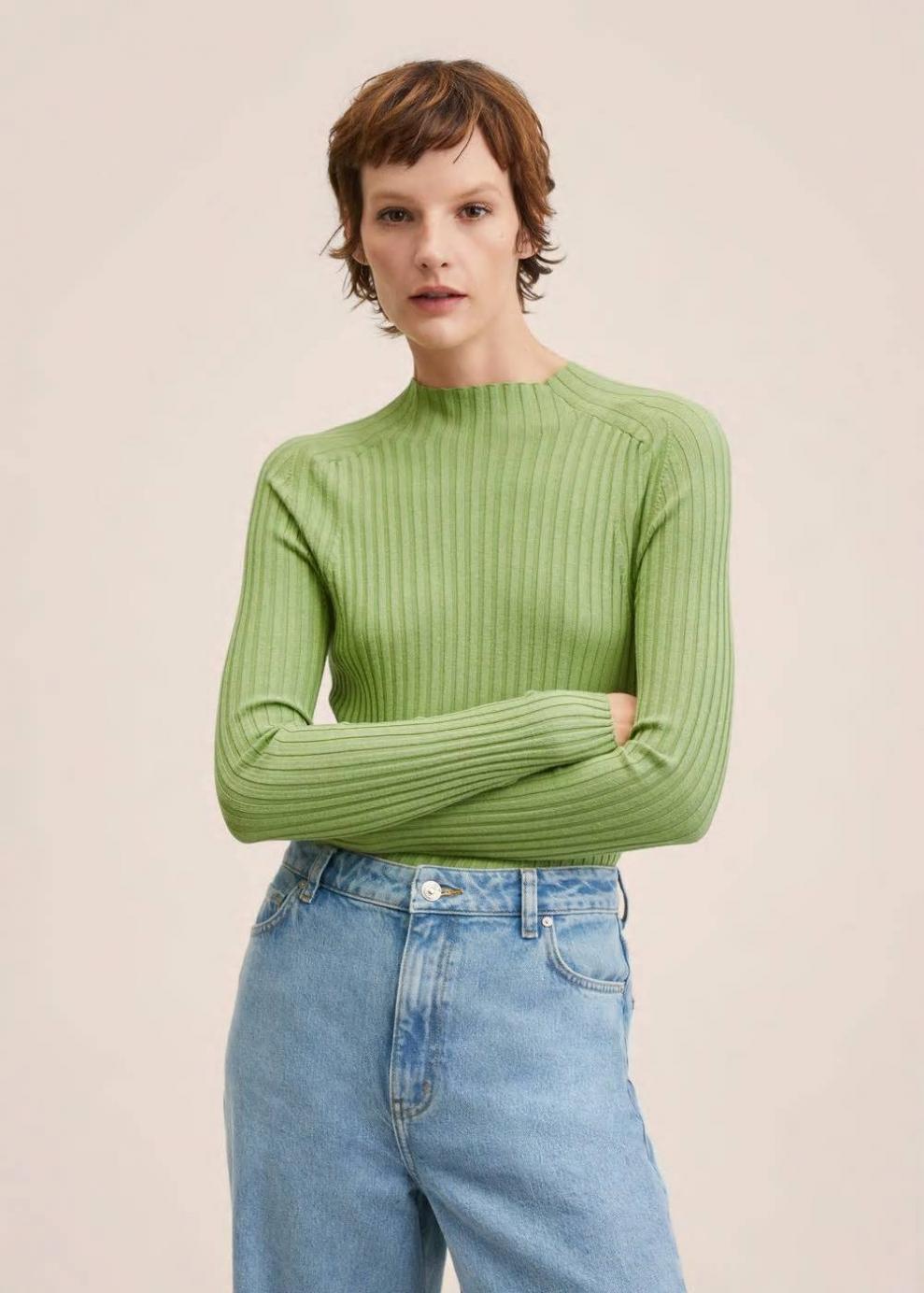 Tejido de punto fino Tejido de canalé Diseño entallado Cuello perkins Manga larga