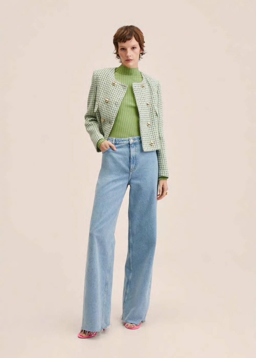 Tejido de punto fino Tejido de canalé Diseño entallado Cuello perkins Manga larga…