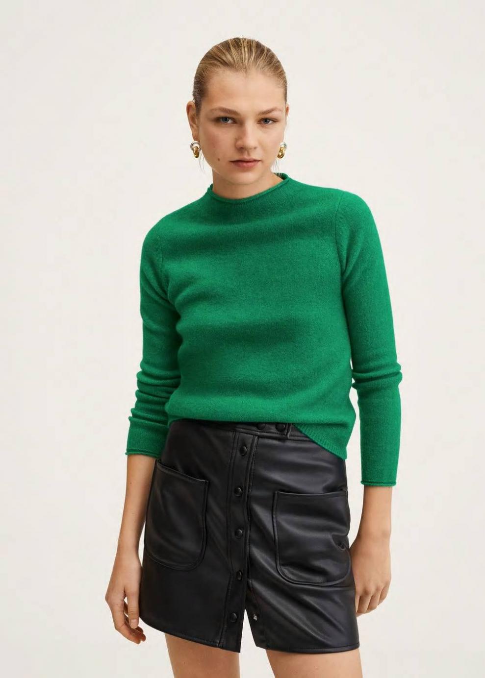 Mujer Jersey punto cuello perkins Verde | Cárdigans y jerséis Mango