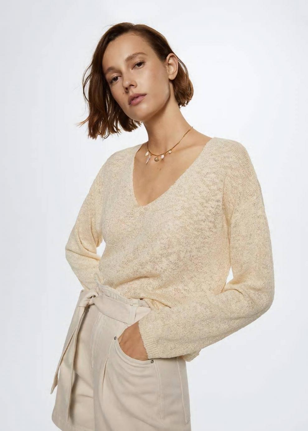 Tejido de punto Diseño recto Diseño largo Cuello pico Manga larga…