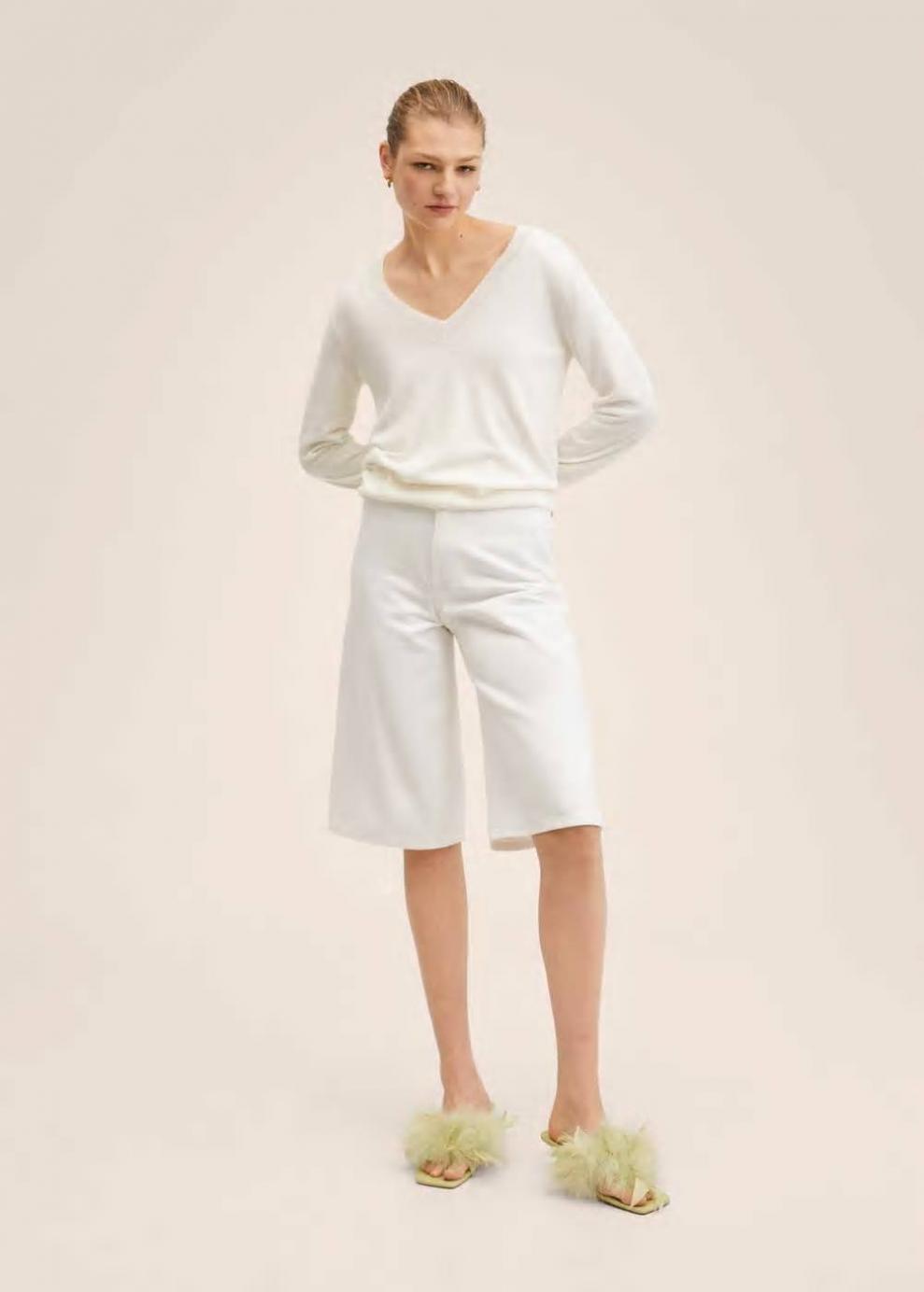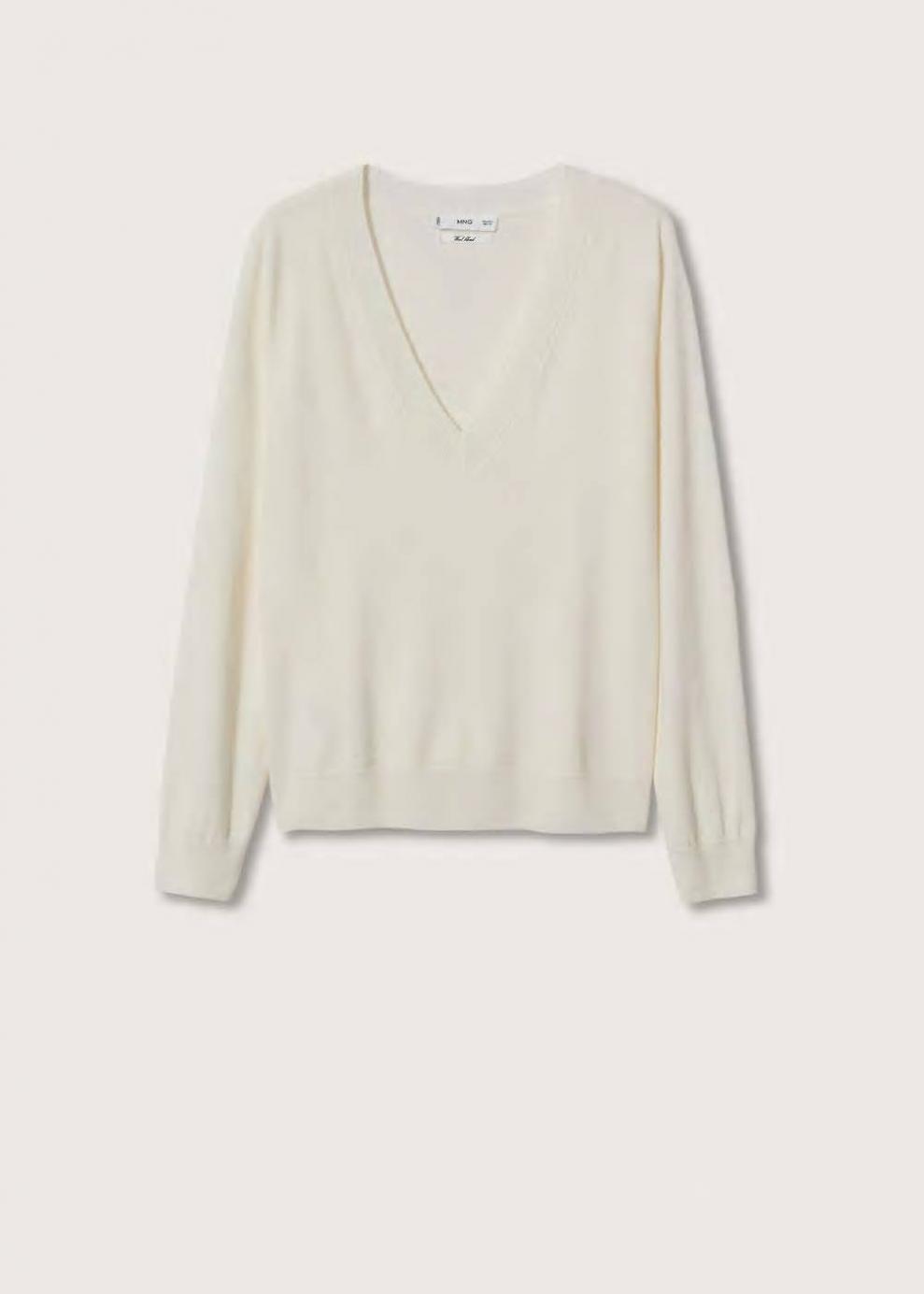 Tejido de punto fino Tejido mezcla de lana Terminaciones en canalé Diseño recto Cuello pico Manga larga…