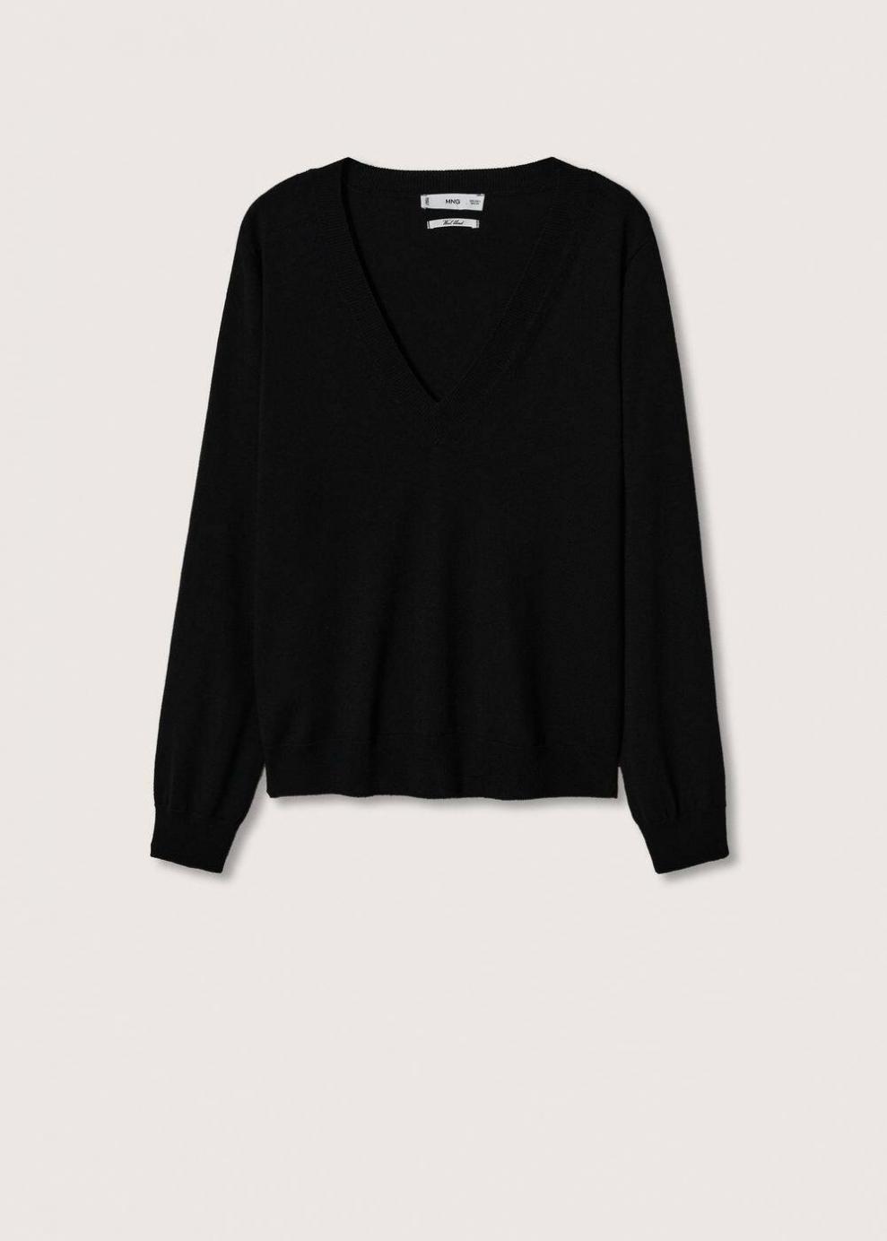 Tejido de punto fino Tejido mezcla de lana Terminaciones en canalé Diseño recto Cuello pico Manga larga…