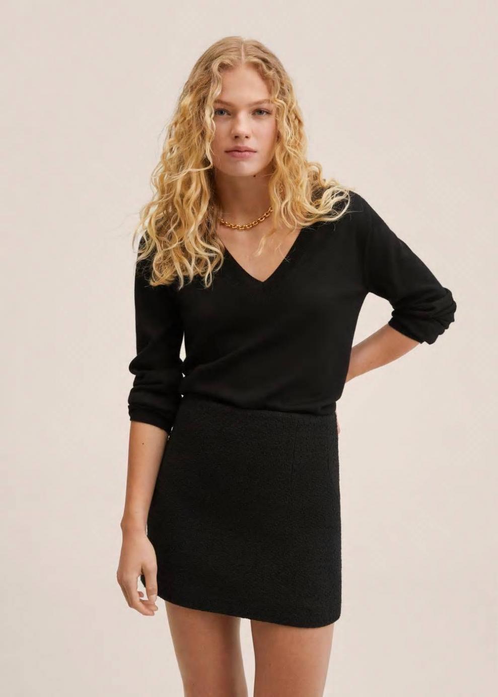 Tejido de punto fino Tejido mezcla de lana Terminaciones en canalé Diseño recto Cuello pico Manga larga