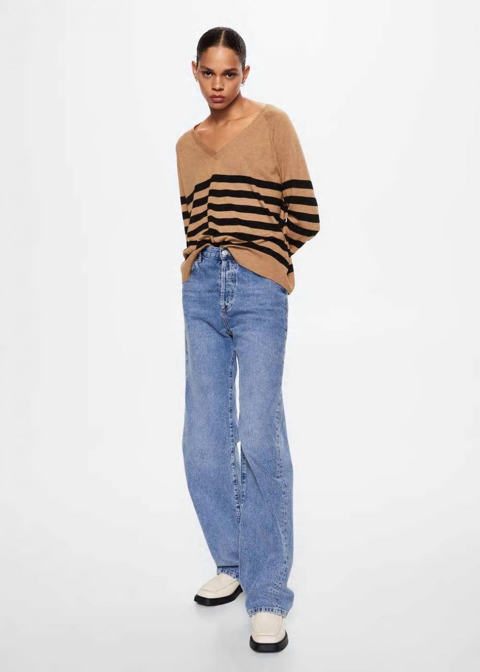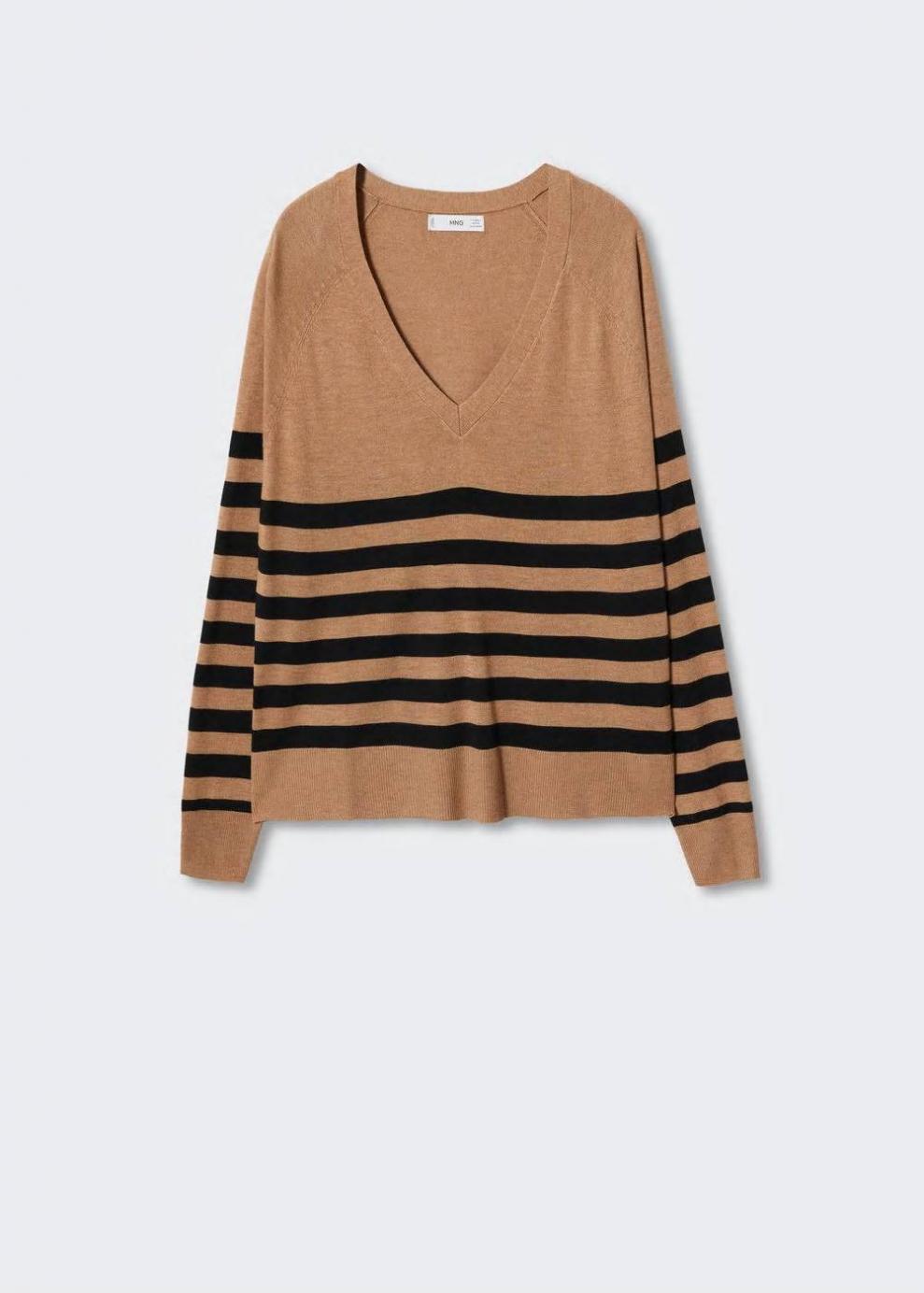 Colección Committed Tejido de punto fino Terminaciones en canalé Estampado de rayas Cuello pico Manga larga Las prendas etiquetadas como Committed son productos que han sido confeccionadas con fibras y/o procesos de producción sostenible, reduciendo así su impacto ambiental. El objetivo de Mango es respaldar la implementación de prácticas más comprometidas con el medio ambiente, aumentando así, el número de prendas sostenibles en su colección.