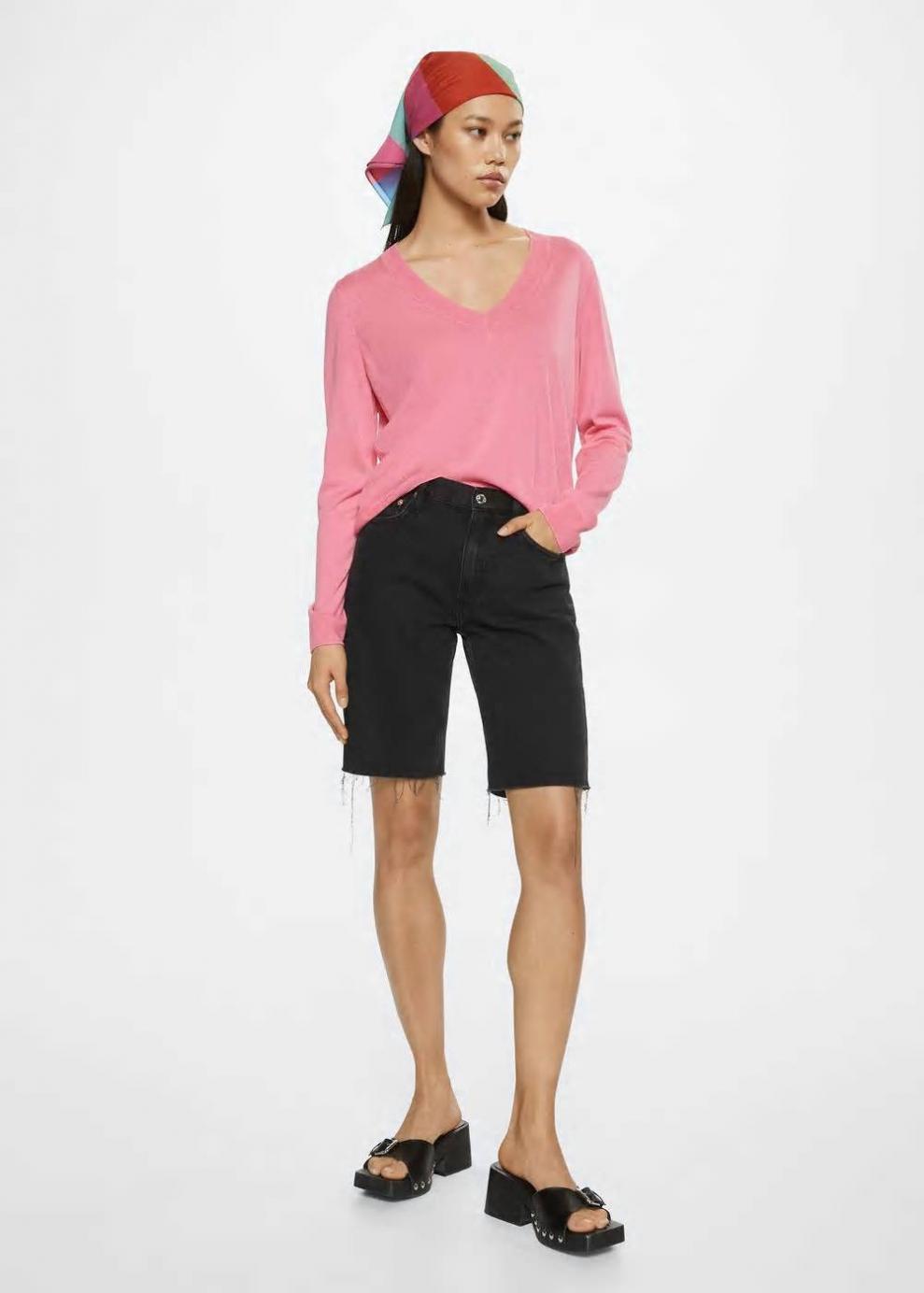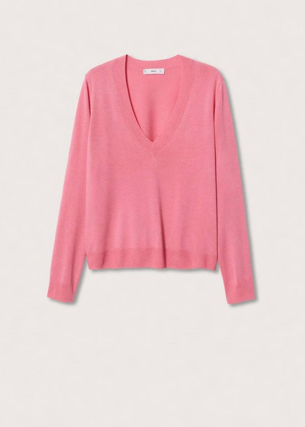 Tejido de punto fino Cuello pico Manga larga Terminaciones en canalé…