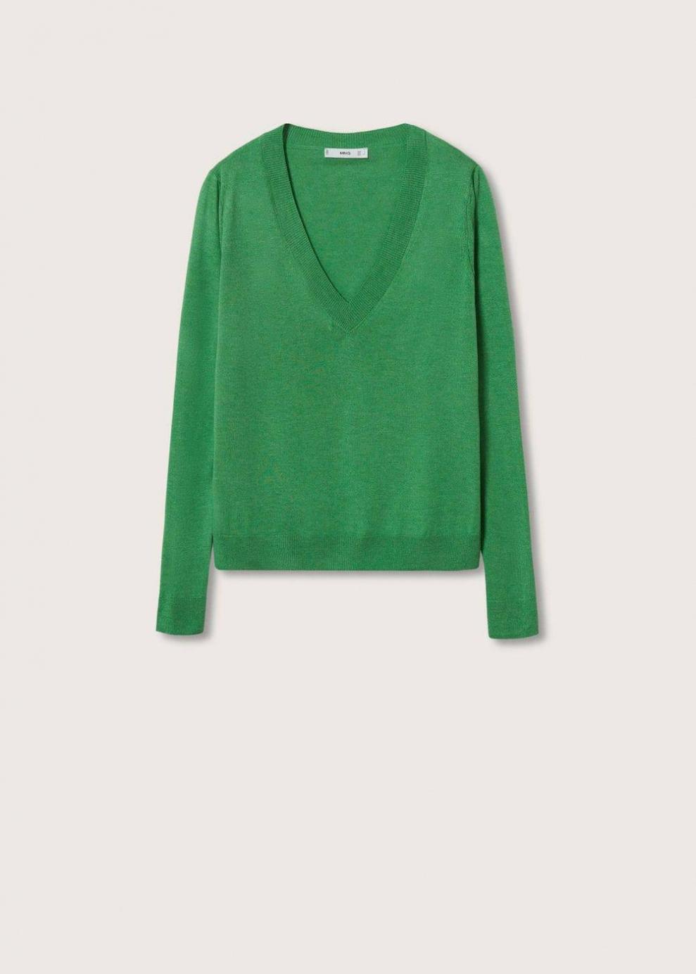 Tejido de punto fino Cuello pico Manga larga Terminaciones en canalé