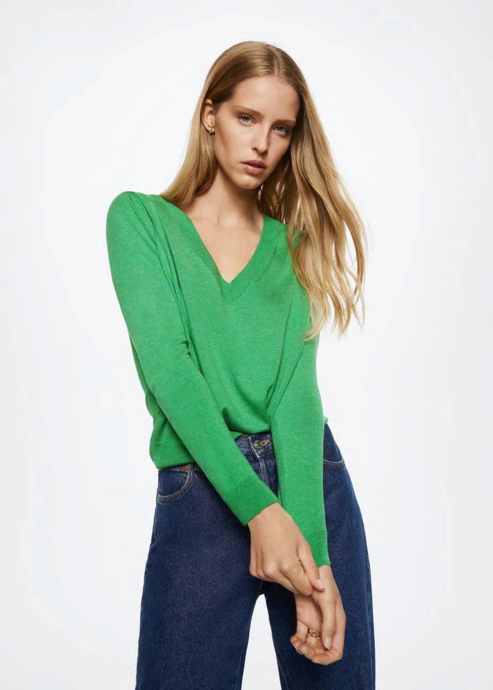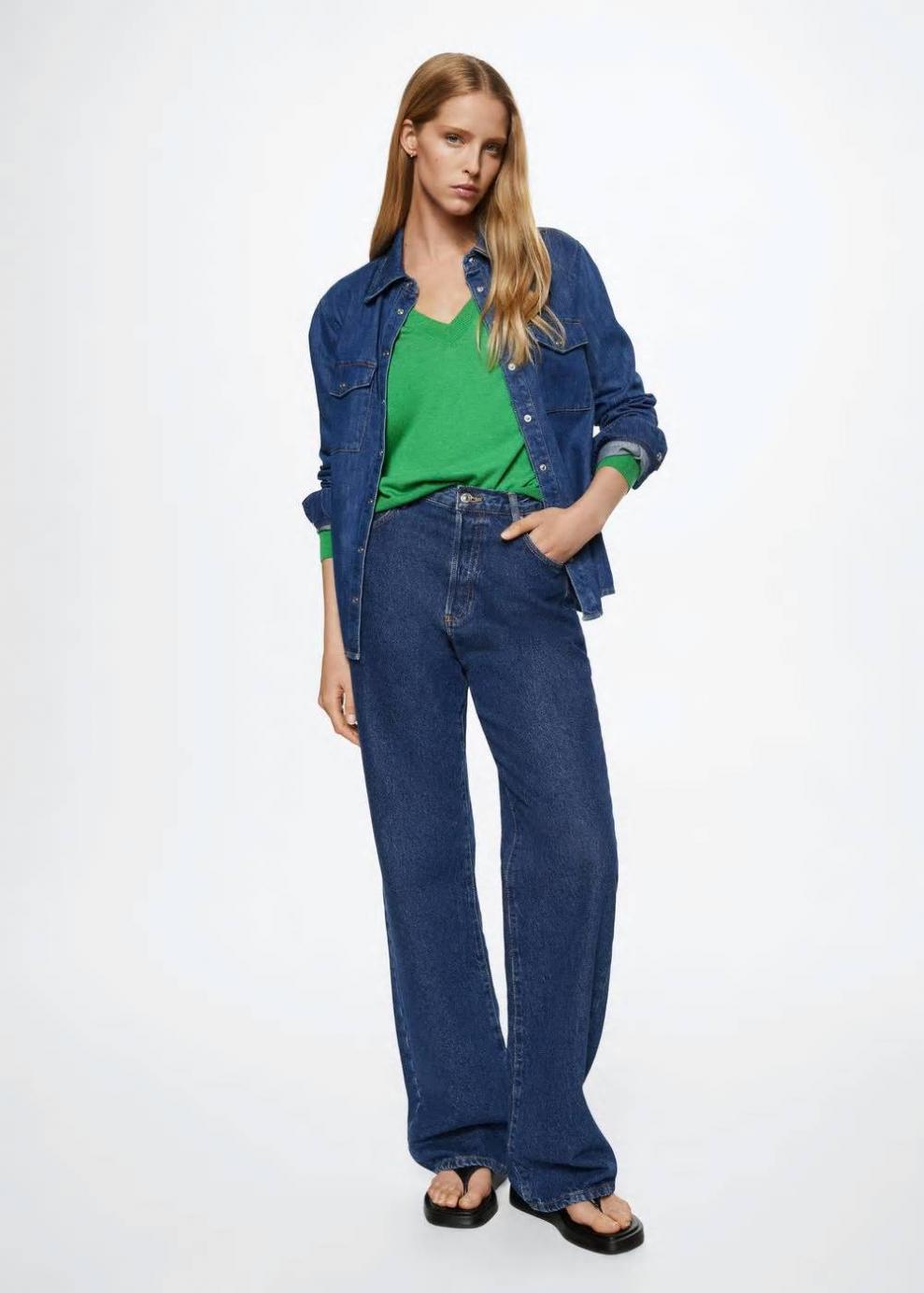 Tejido de punto fino Cuello pico Manga larga Terminaciones en canalé…