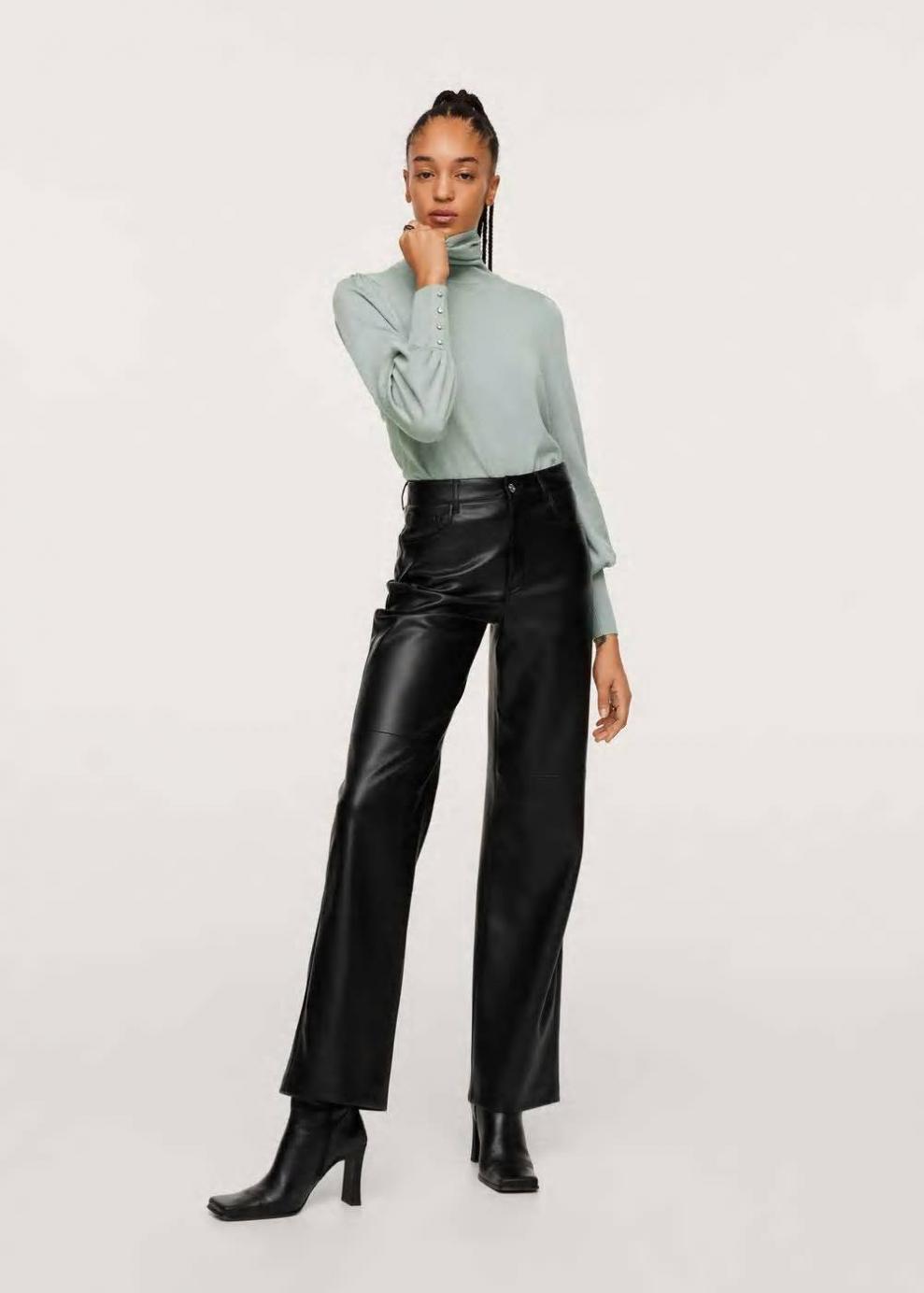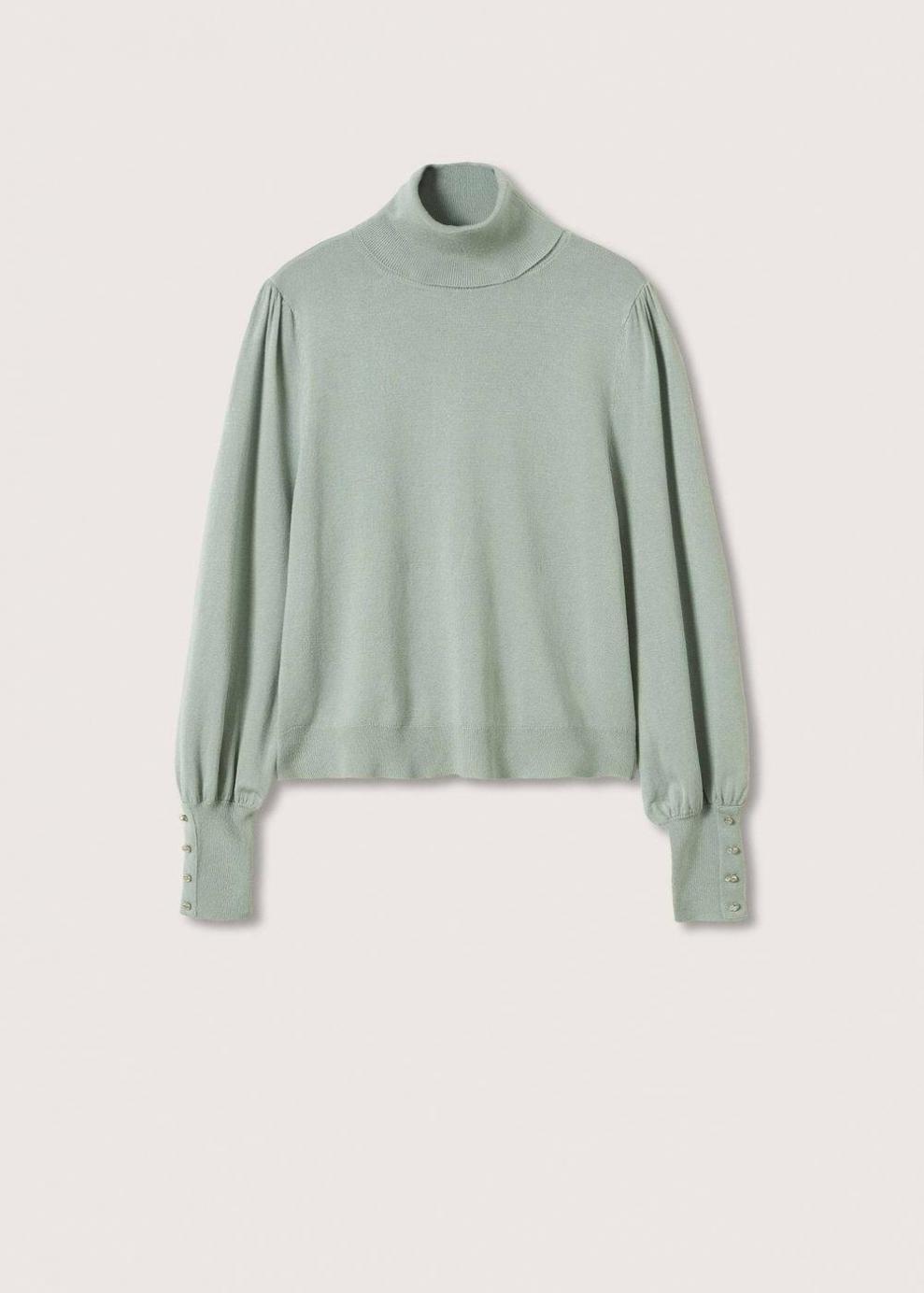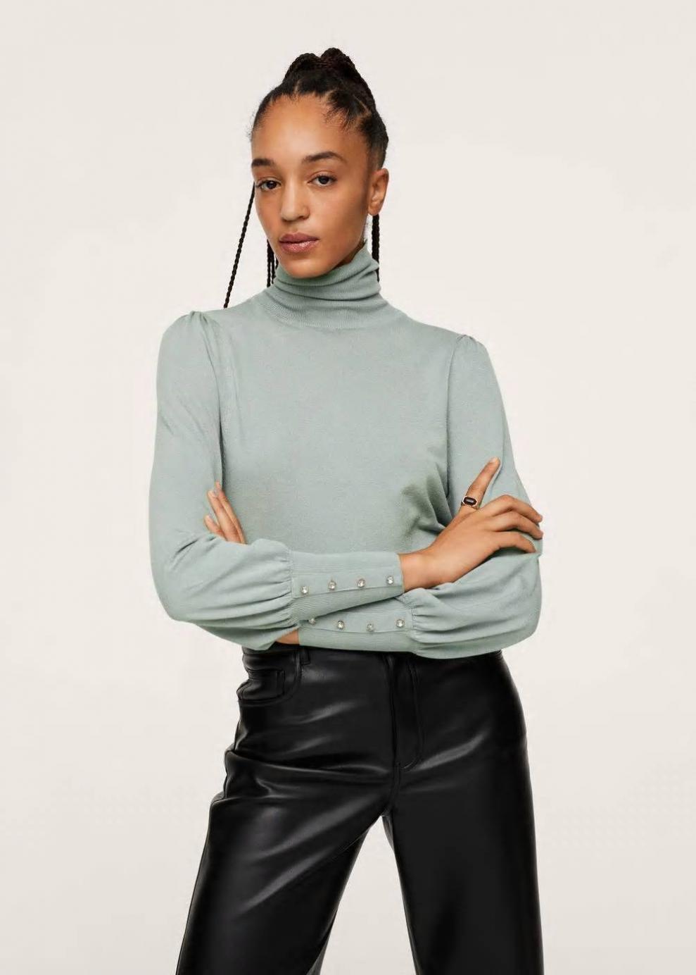 Tejido de punto fino Terminaciones de canalé Diseño recto Cuello alto Manga larga abullonada Apliques decorativos brillantes…