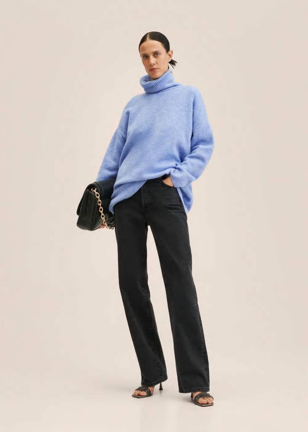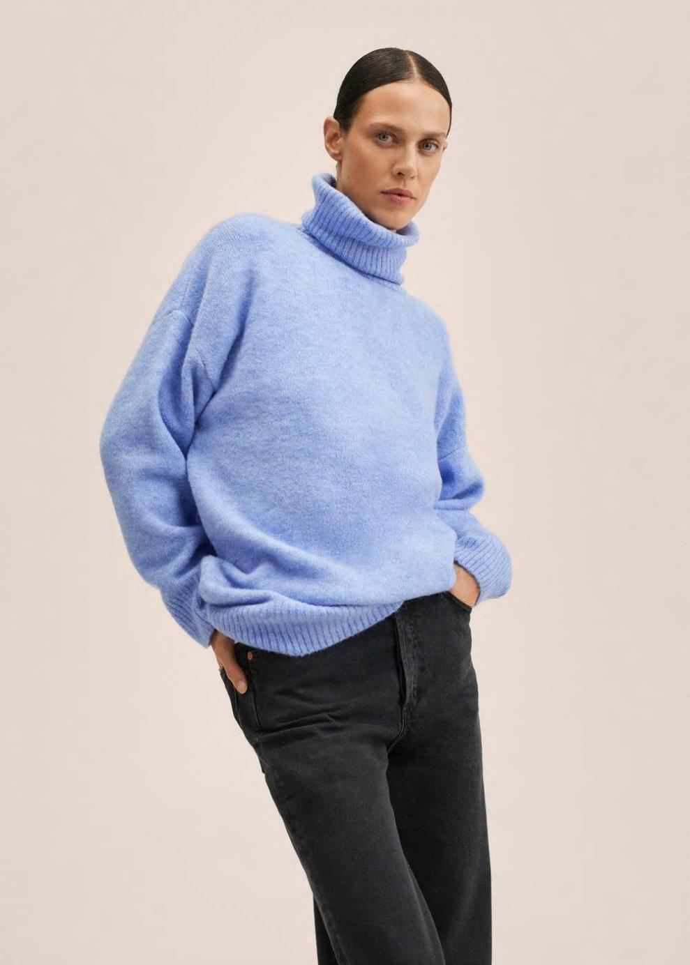 Exclusivo Online Tejido de punto Diseño oversize Cuello vuelto Manga larga Terminaciones en canalé Tallaje más grande de lo habitual…