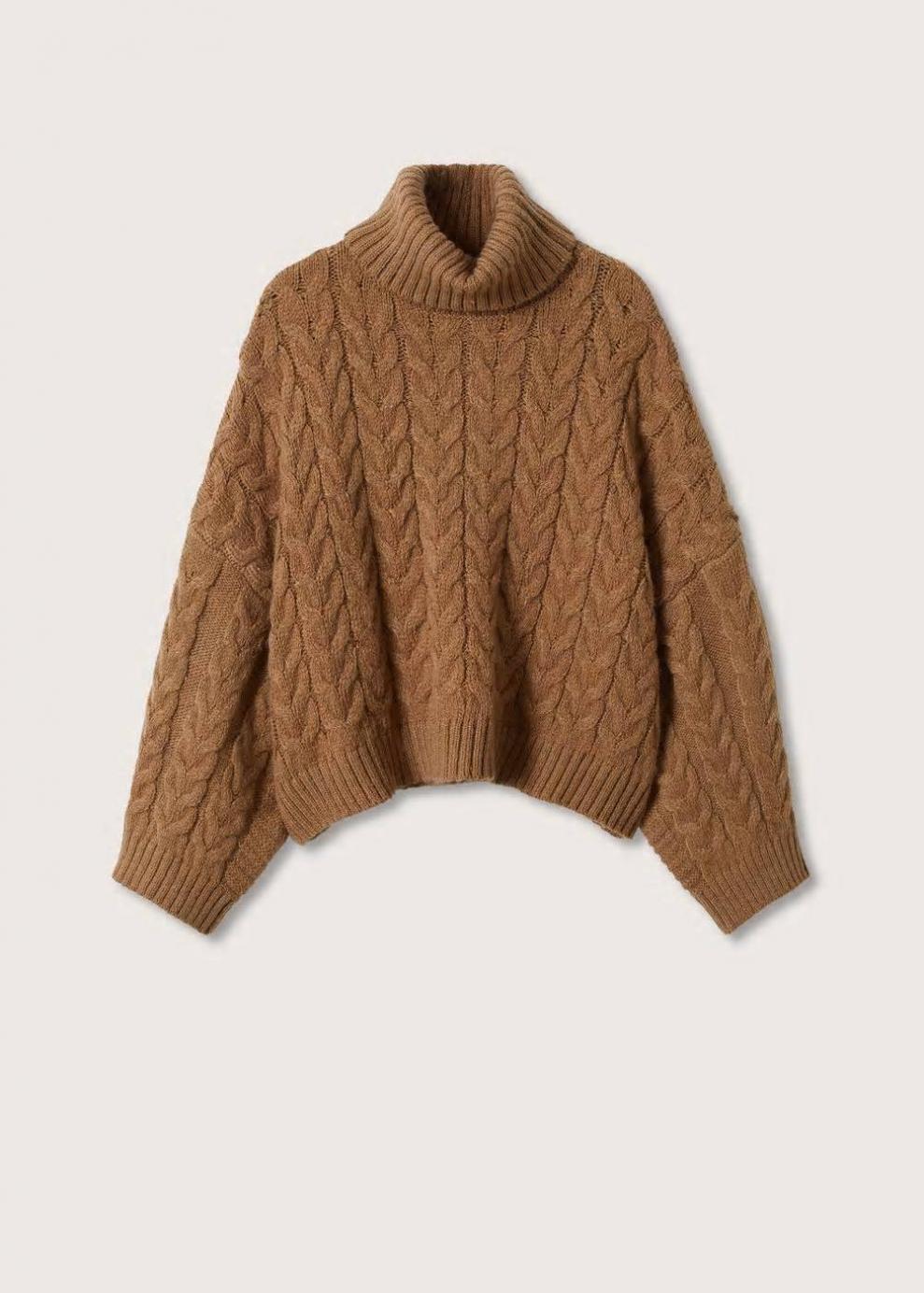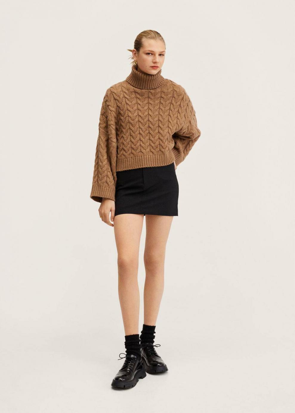 Tejido de punto grueso Diseño trenzado Terminaciones en canalé Diseño oversize Diseño crop Cuello vuelto Manga larga Tallaje más grande de lo habitual Las prendas etiquetadas como Committed son productos que han sido confeccionadas con fibras y/o procesos de producción sostenible, reduciendo así su impacto ambiental. El objetivo de Mango es respaldar la implementación de prácticas más comprometidas con el medio ambiente, aumentando así, el número de prendas sostenibles en su colección.