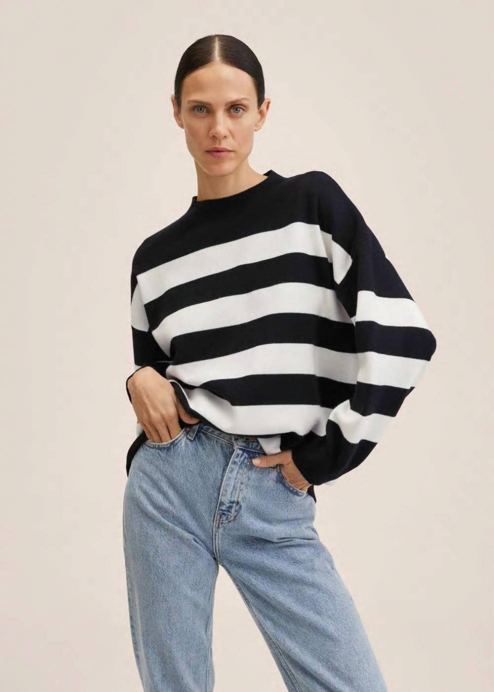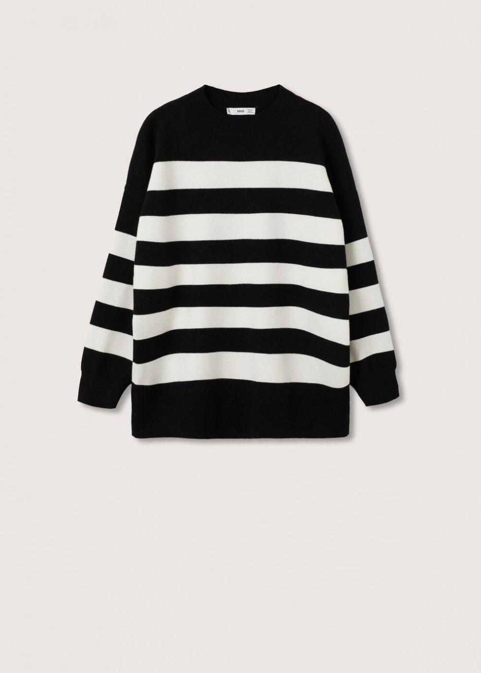 Tejido de punto fino Sin cierre Diseño oversize Diseño largo Estampado de rayas Cuello redondo Manga larga Costura del hombro caída…