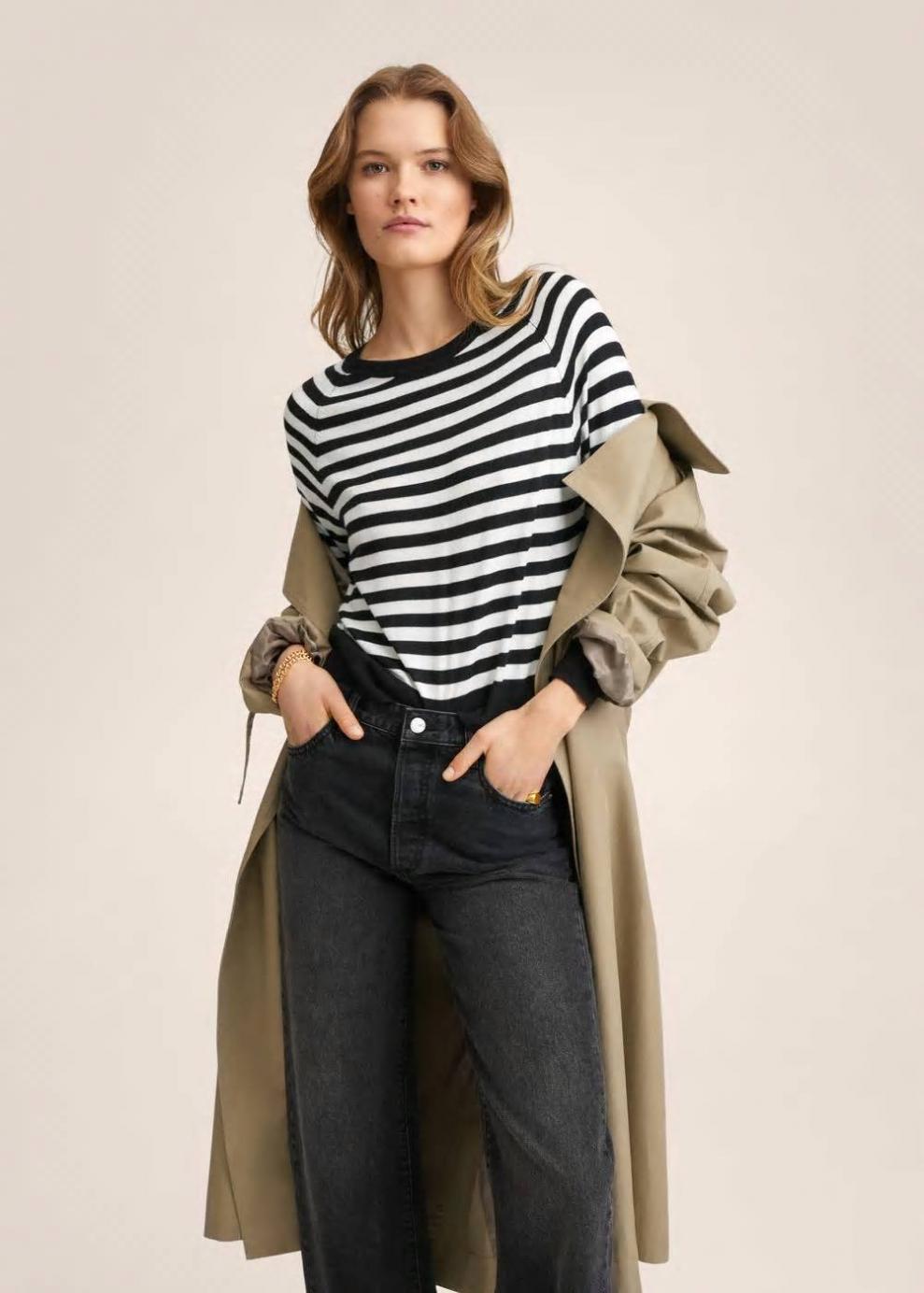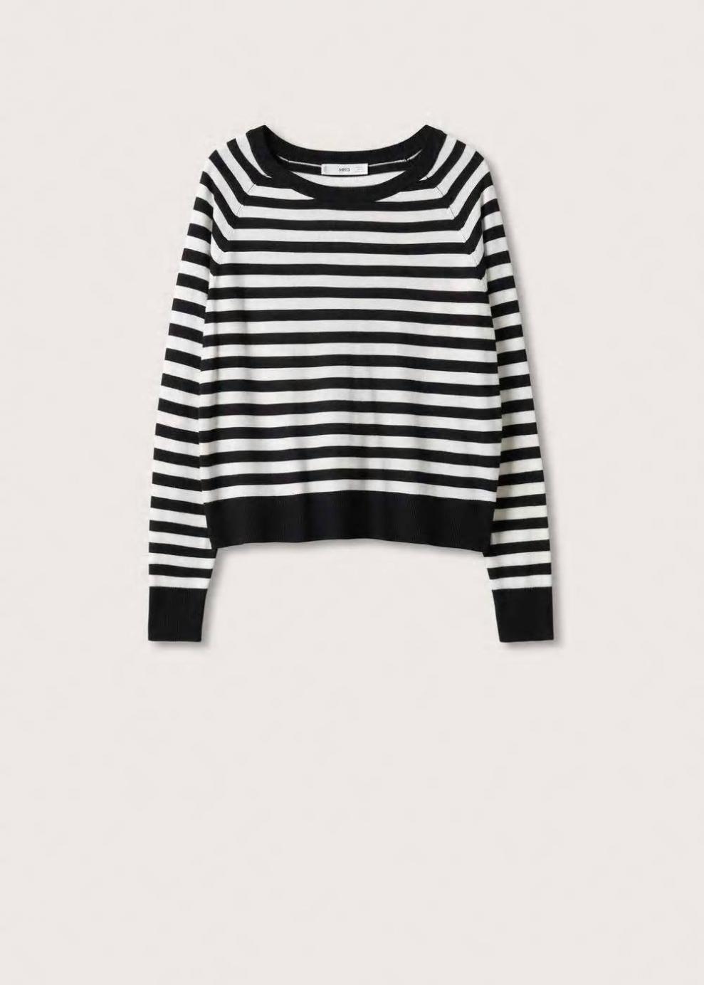 Colección Committed Tejido de punto fino Terminaciones en canalé Estampado de rayas Diseño recto Cuello redondo Manga larga Disponible Plus Las prendas etiquetadas como Committed son productos que han sido confeccionadas con fibras y/o procesos de producción sostenible, reduciendo así su impacto ambiental. El objetivo de Mango es respaldar la implementación de prácticas más comprometidas con el medio ambiente, aumentando así, el número de prendas sostenibles en su colección.
