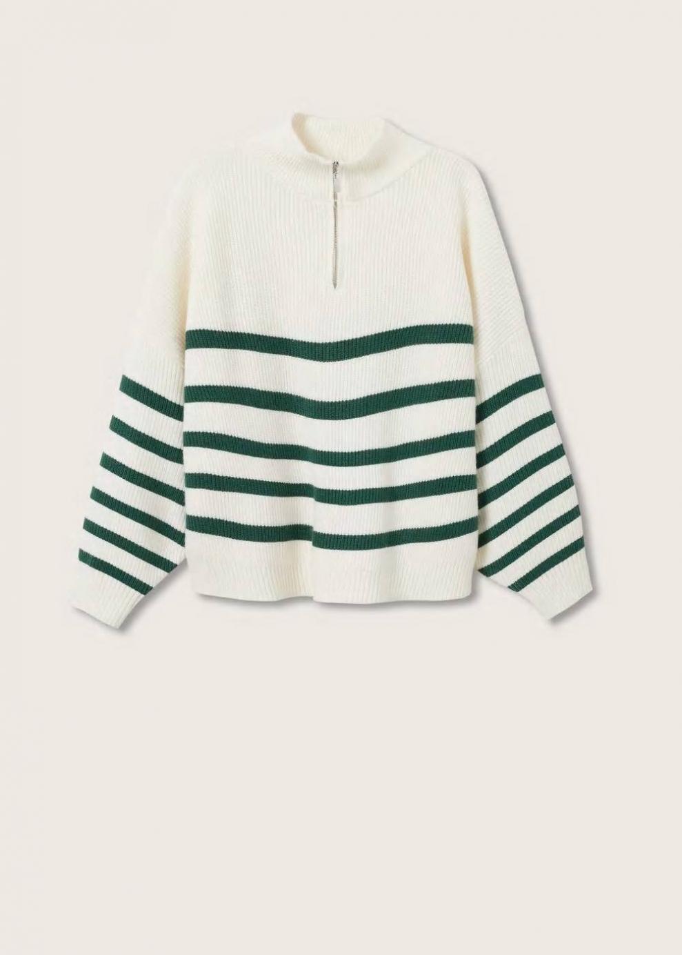 Tejido de punto en canalé Sin cierre Diseño estándar Punto medio Cuello alto Estampado de rayas Diseño recto Cuello alto cremallera Manga larga Las prendas etiquetadas como Committed son productos que han sido confeccionadas con fibras y/o procesos de producción sostenible, reduciendo así su impacto ambiental. El objetivo de Mango es respaldar la implementación de prácticas más comprometidas con el medio ambiente, aumentando así, el número de prendas sostenibles en su colección.