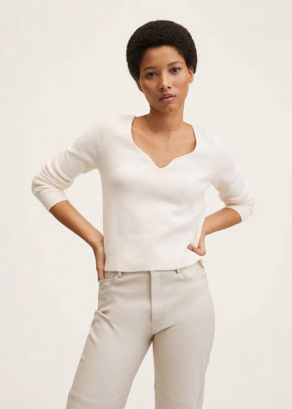 Asymmetric Tejido de punto grueso Slim fit Colección Committed Sin cierre Diseño estándar Tejido de punto Tejido con textura Diseño crop Diseño recto Escote corazón Manga larga Terminaciones de canalé Las prendas etiquetadas como Committed son productos que han sido confeccionadas con fibras y/o procesos de producción sostenible, reduciendo así su impacto ambiental. El objetivo de Mango es respaldar la implementación de prácticas más comprometidas con el medio ambiente, aumentando así, el número de prendas sostenibles en su colección.