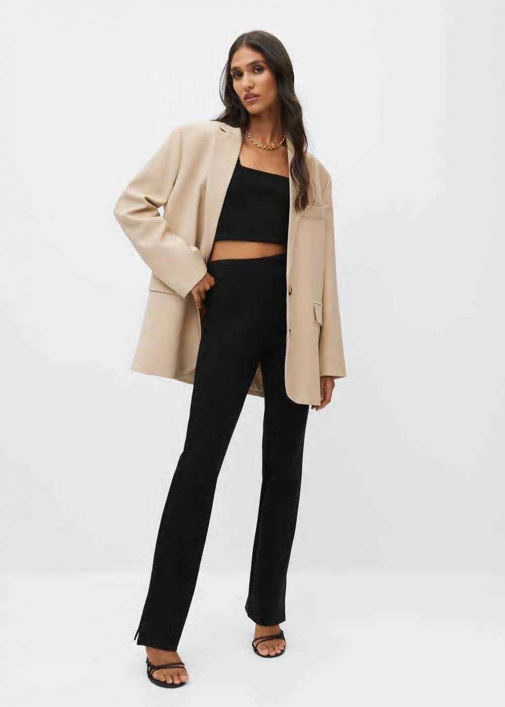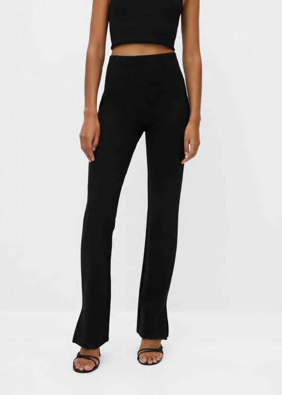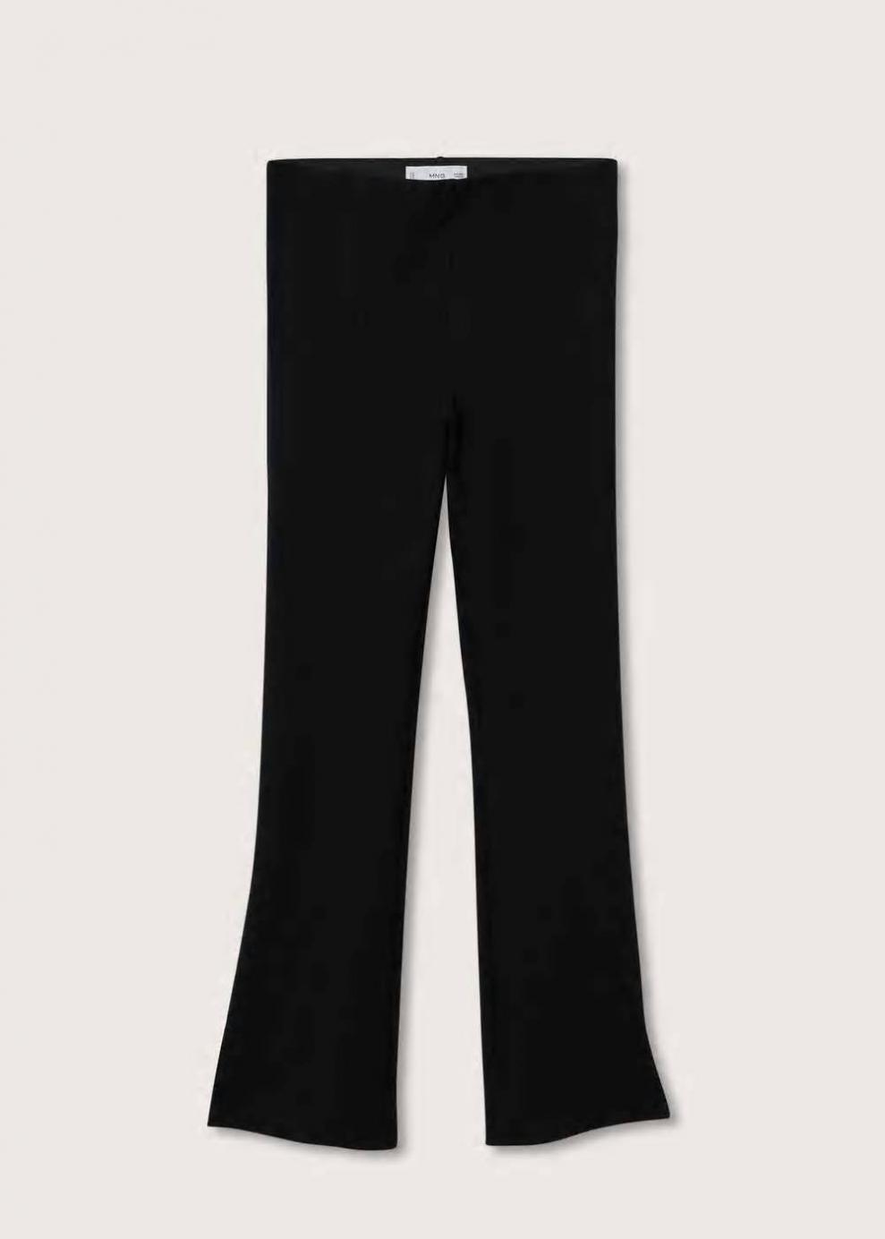Colección Committed Tejido elástico Diseño largo Diseño acampanado Tiro alto Aberturas en el bajo Cintura elástica Las prendas etiquetadas como Committed son productos que han sido confeccionadas con fibras y/o procesos de producción sostenible, reduciendo así su impacto ambiental. El objetivo de Mango es respaldar la implementación de prácticas más comprometidas con el medio ambiente, aumentando así, el número de prendas sostenibles en su colección.