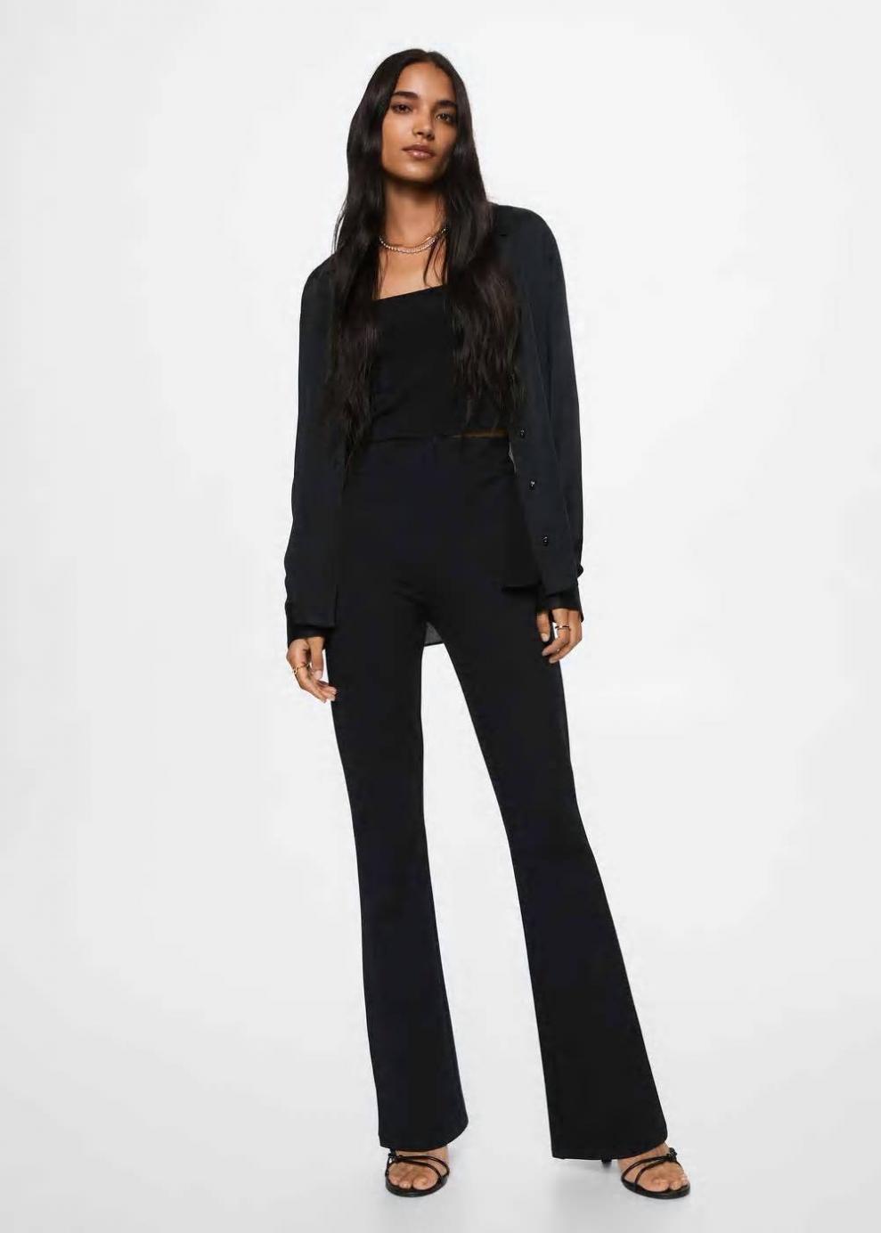 Colección Committed Tejido elástico Diseño largo Bajo acampanado Cintura elástica Las prendas etiquetadas como Committed son productos que han sido confeccionadas con fibras y/o procesos de producción sostenible, reduciendo así su impacto ambiental. El objetivo de Mango es respaldar la implementación de prácticas más comprometidas con el medio ambiente, aumentando así, el número de prendas sostenibles en su colección.