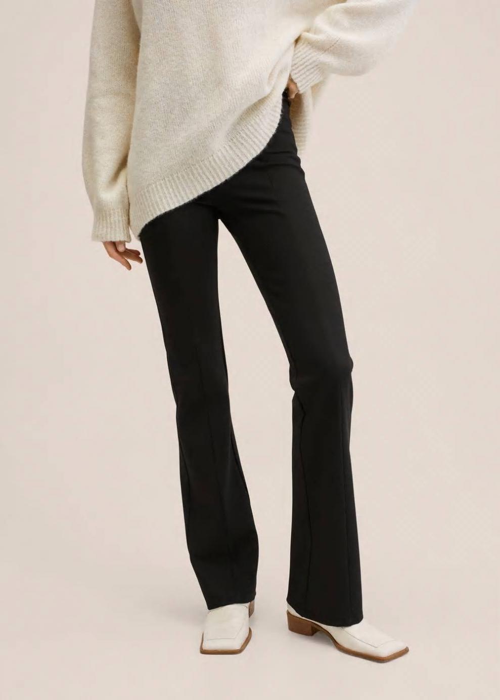 Colección Committed Tejido de punto Tejido elástico Diseño entallado Diseño acampanado Diseño largo Tiro medio Cintura elástica Las prendas etiquetadas como Committed son productos que han sido confeccionadas con fibras y/o procesos de producción sostenible, reduciendo así su impacto ambiental. El objetivo de Mango es respaldar la implementación de prácticas más comprometidas con el medio ambiente, aumentando así, el número de prendas sostenibles en su colección.